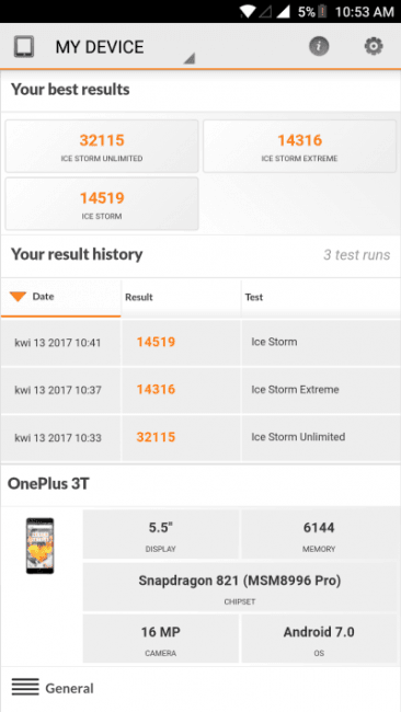 Dla osób, które interesują cyferki, wyniki uzyskane przez OnePlus 3T w najpopularniejszych testach syntetycznych, zatem… benchmarki: