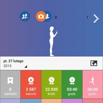 Program jest bardzo kolorowy i sama nie wiem czy jest to jego zaletą, czy wadą. W każdym razie najbardziej nieintuicyjny jest tu dla mnie sam sposób przedstawienia wyników uzyskanych każdego dnia. Mamy bowiem zamiast danych podanych na tacy ile przeszliśmy kroków danego dnia animację, która pokazuje, o której godzinie wykonywaliśmy poszczególne aktywności, kiedy spalaliśmy kalorie, kiedy robiliśmy zdjęcie, spędzaliśmy czas na portalach społecznościowych czy spaliśmy. I to by było OK, gdyby nie fakt, że na przykład przechodząc z aktualnego widoku dzisiejszego dnia do dnia wczorajszego, przerzuca nas automatycznie do godziny 00:01, gdzie mamy spaloną jedną kalorię. To może być mylące i w pierwszej chwili można odnieść wrażenie, że aplikacja nie zsynchronizowała danych z opaski. Błąd. Po prostu pokazała stan kroków z początku dnia, a nie z jego końca. To dla mnie niezrozumiałe.