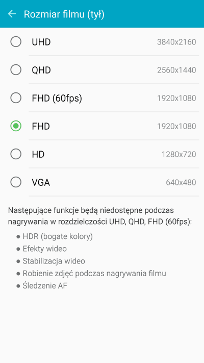 Co ważne dla wielu, Samsung wreszcie wprowadził możliwość zapisywania zdjęć robionych w trybie profesjonalnym w RAW. Mamy też tworzenie kolażu filmów, timelapse, slow motion, wirtualne zdjęcie, panoramę, pole ostrości oraz emisję na żywo (wystarczy powiązać ze swoim kontem YouTube). Z HDR możemy korzystać zarówno w przypadku głównego aparatu, jak i frontowego. Oczywiście nie zabrakło również możliwości uruchamiania aparatu przez dwukrotne kliknięcie przycisku Home.