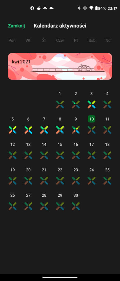Przekrój jest dość spory i zapewne większość znajdzie w tym zestawie dyscypliny, z którymi ma styczność. Ja osobiście skupiłem się przede wszystkim na bieganiu, spacerach i jeździe na rowerze. Niestety, nie miałem okazji sprawdzić pływania. Opaska gwarantuje wodoszczelność do 50 metrów głębokości. W kwestii tej mogę co najwyżej powiedzieć, że dokładne mycie opaski pod bieżącą wodą po treningach jej nie zaszkodziło.