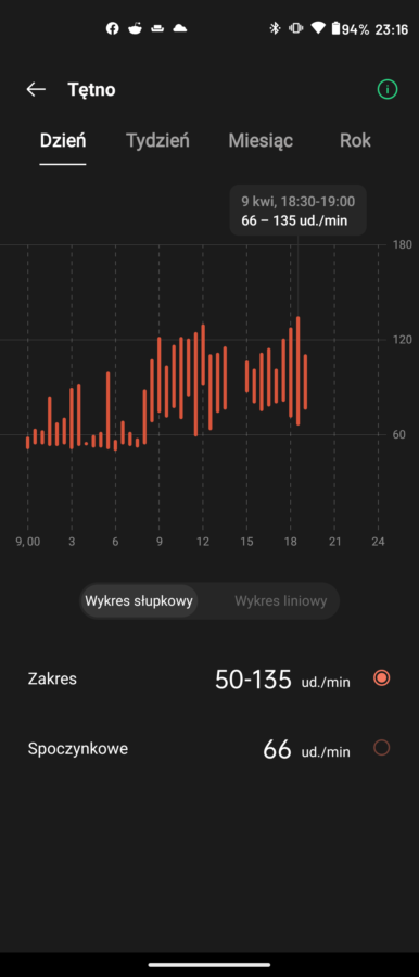 Oprócz podstawowych statystyk liczbowych, dostajemy dwa wykresy z tętnem w czasie rzeczywistym, jak i kadencją w dzienniku ćwiczeń. Do tego mamy możliwość sprawdzenia trasy, jaką udało nam się pokonać w trakcie treningu i to wszystko. Nie ma nic więcej. O ile osobom, które są zainteresowane podstawowymi pomiarami, to zapewne wystarczy, tak w przypadku tych bardziej świadomych lub chcących po prostu wyciągnąć więcej na temat swojego stanu zdrowia czy treningów, to będzie zdecydowanie za mało.