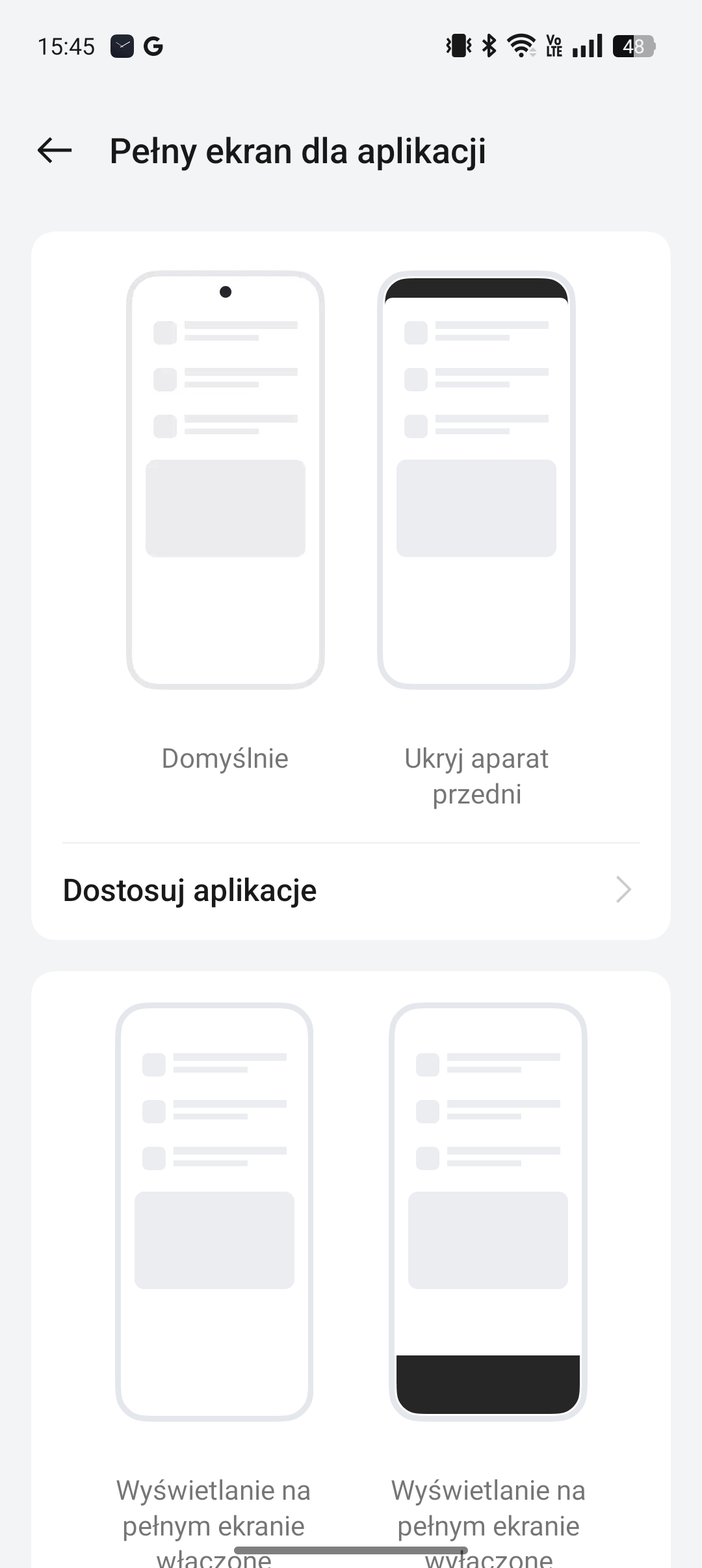 Producent dorzuca także tryb snu, umożliwiający ograniczanie ilości generowanego przez ekran światła niebieskiego po zachodzie słońca, opcję podbijania jasności w treściach z HDR-em oraz wybór pomiędzy odświeżaniem 60 Hz, 120 Hz lub tryb automatyczny, któremu przydałaby się kalibracja. Reno 12 Pro decydowało się bowiem na mniejszą płynność np. podczas przeglądania mediów społecznościowych, czyli wtedy, kiedy najbardziej widać zalety płynnego przewijania.