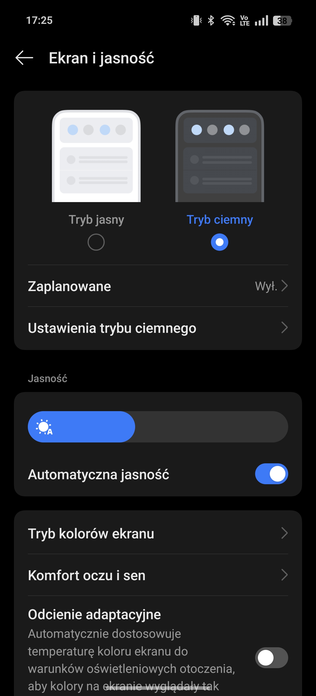 W ustawieniach ekranu mamy wybór między jedną z trzech opcji wyświetlania kolorów: Naturalne (domyślny), Pro oraz Jaskrawe. W moim odczuciu najlepiej wygląda właśnie domyślne nastawienie, bowiem w Pro kolory zdają się być lekko wyprane, a w jaskrawym znów zbyt przesycone. Jest też regulacja temperatury barwowej.