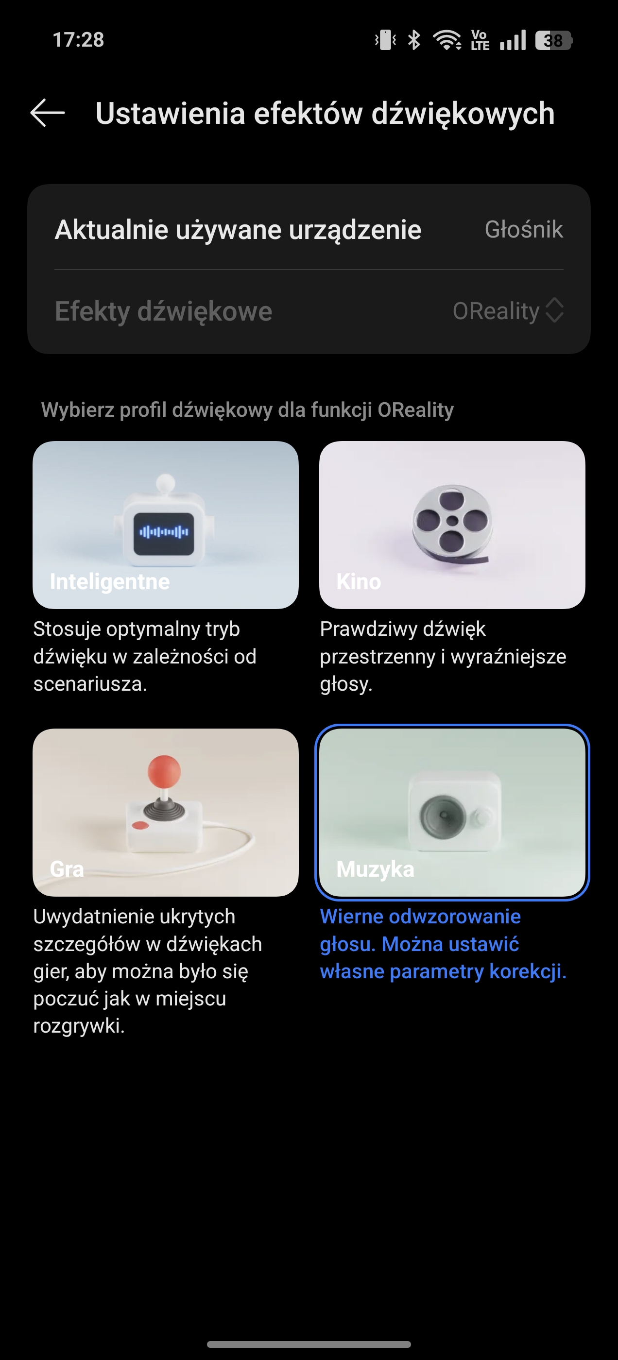 Bez zaskoczenia, Oppo Reno 13 Pro oferuje głośniki stereo – jeden w maskownicy nad wyświetlaczem, drugi na dolnej ramce. Podobnie, jak w przypadku droższego Find X8 Pro, tak i tu Oppo zapomniało o implementacji Dolby Atmos. Jest za to autorskie rozwiązanie OReality z czterema trybami działania oraz dźwięk holograficzny.