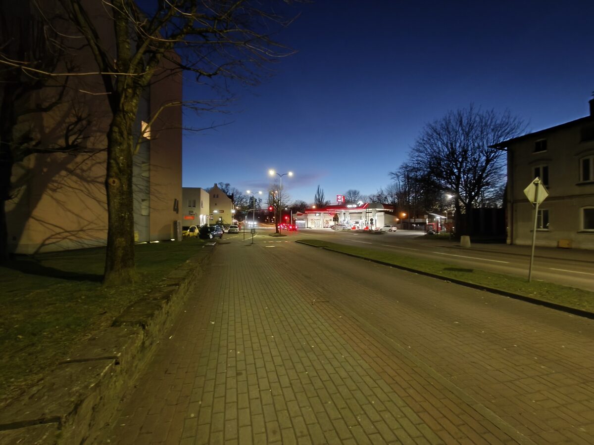 Koniec końców, tryb nocny na ogół dobrze rozpoznaje, co lepiej naświetlić, a co nie powinno być zbyt jasne. Przez to, np. neony oraz szyldy z reguły nie są przepalonymi plamami, tylko pozostają czytelne.