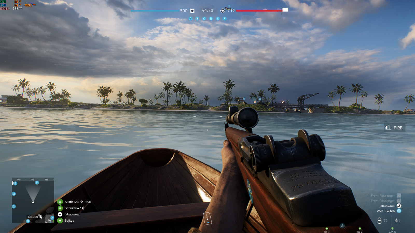 PUBG wykorzystuje potencjał RTX-a w prawie 100%. Klatki stałe na poziomie mniej więcej 108 FPS przy ustawieniach Ultra – a widać, że chłodzenie karty dawało z siebie wszystko, bo temperatury widzimy ciągle powyżej 70 stopni Celsjusza.