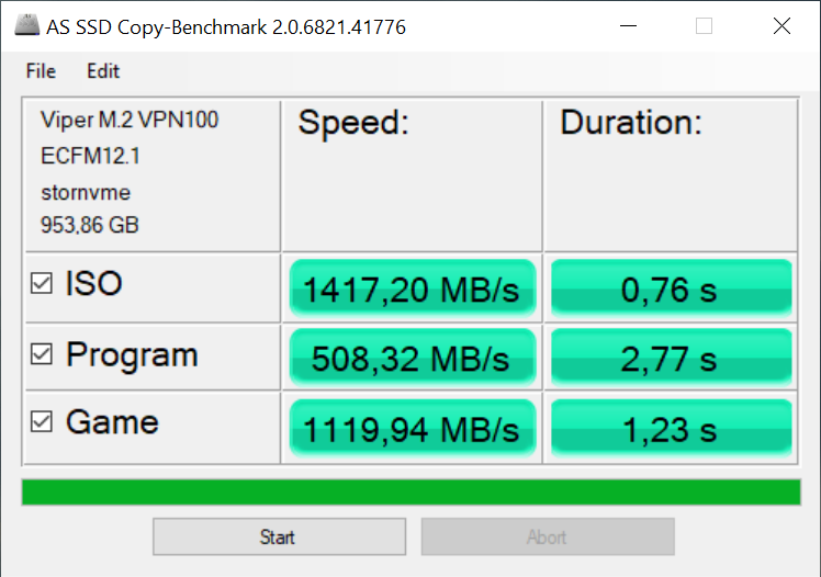 Powyżej jeszcze test kopiowania 1 GB danych różnego typu – VPN100 ma tu sporą przewagę nad Samsungiem 970 EVO Plus w teście „Program” oraz „Game”, wygrywając zarazem dość wyraźnie w kategorii „ISO”.