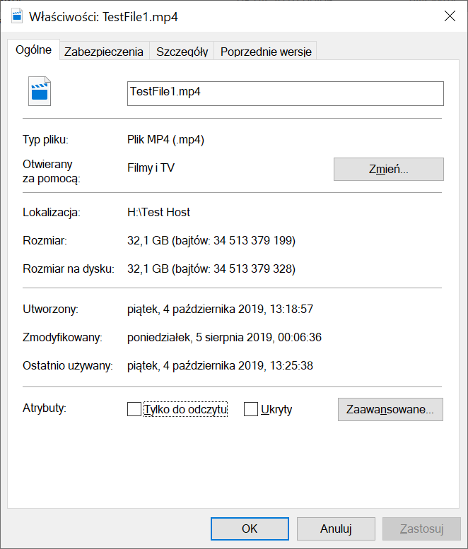 Na koniec pierwszej części testów, wyniki pomiarów kopiowania plików: