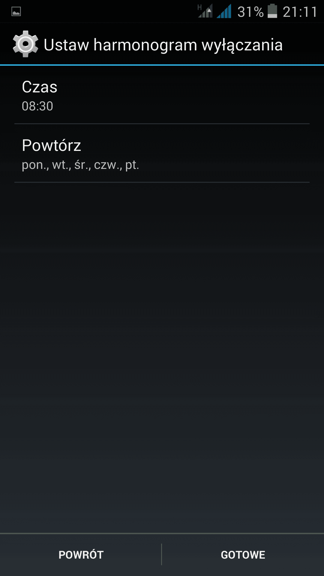 • Harmonogram włączania i wyłączania – ustawiamy, o której i w jakie dni, Philips ma ponownie się uruchamiać,