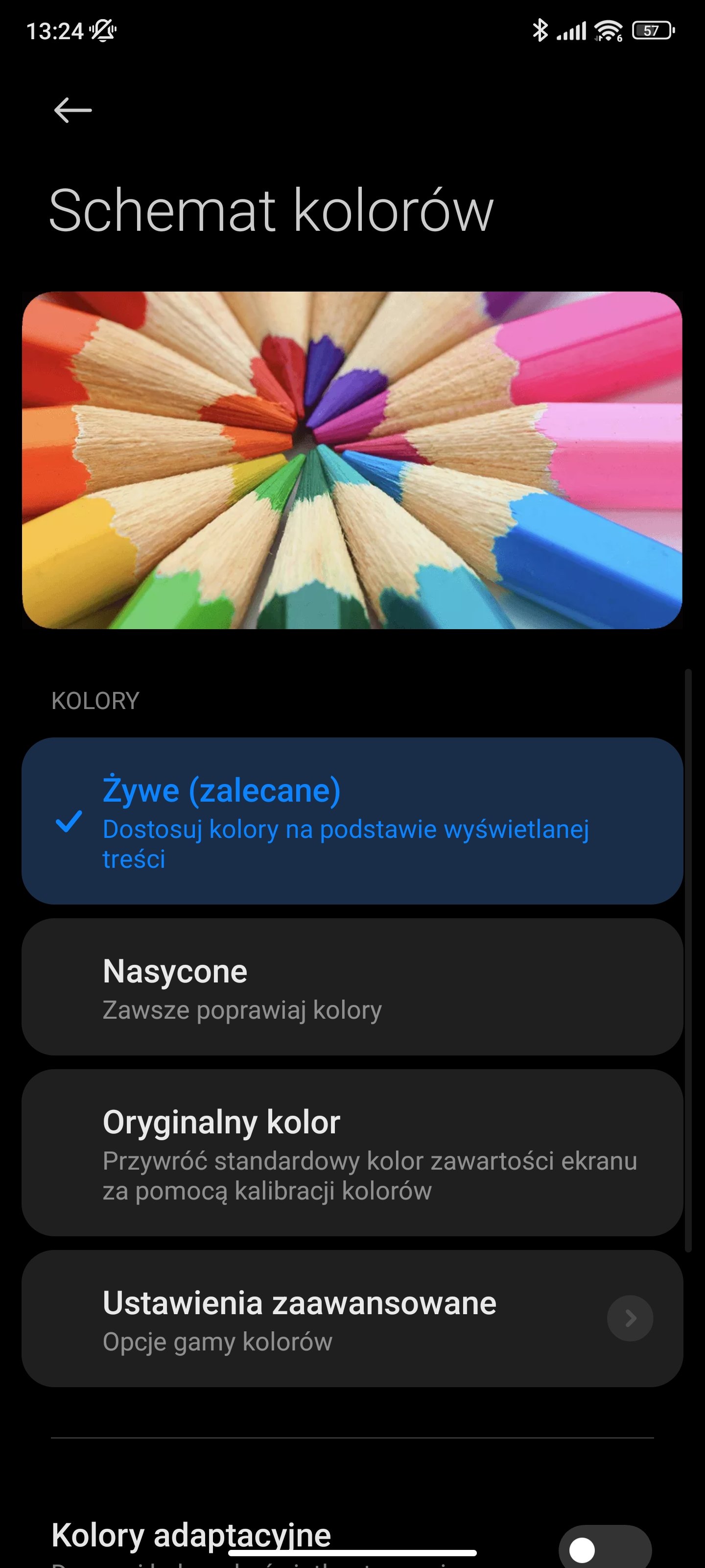 Podobnie jak w innych smartfonach Xiaomi z nakładką MIUI, do dyspozycji mamy całkiem rozbudowane ustawienia edycji wyświetlanych kolorów, temperatury barwowej czy zmianę palety barwowej na P3 lub sRGB.