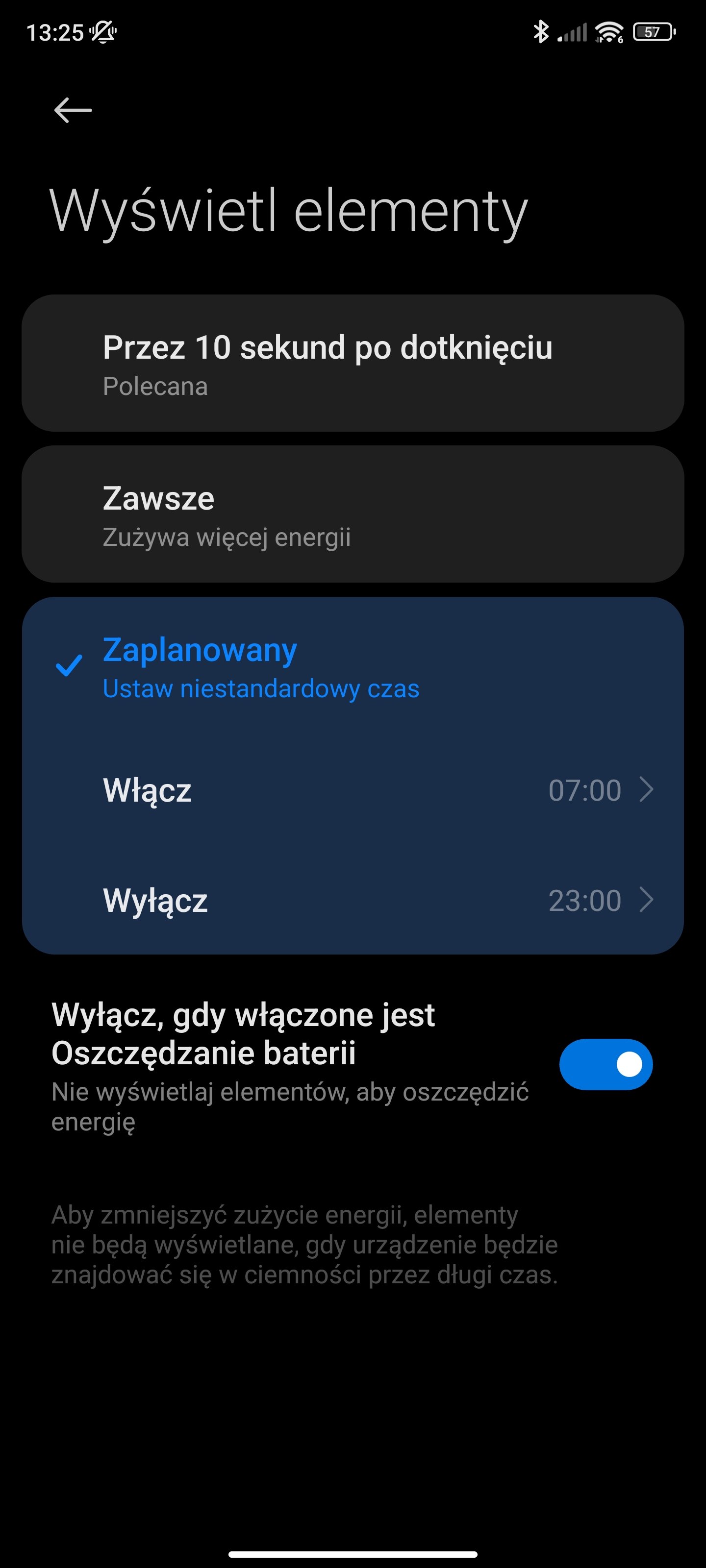Do kompletu, Poco F5 Pro nie brakuje również pełnego Always on Display. Możemy tu wybrać spośród kilkunastu różnych styli zegara, stworzyć własny i dostosować kolorystykę. Samo AoD może wyświetlać się w trybie stałym, z harmonogramem godzinowym lub zaledwie przez 10 sekund od stuknięcia w ekran.