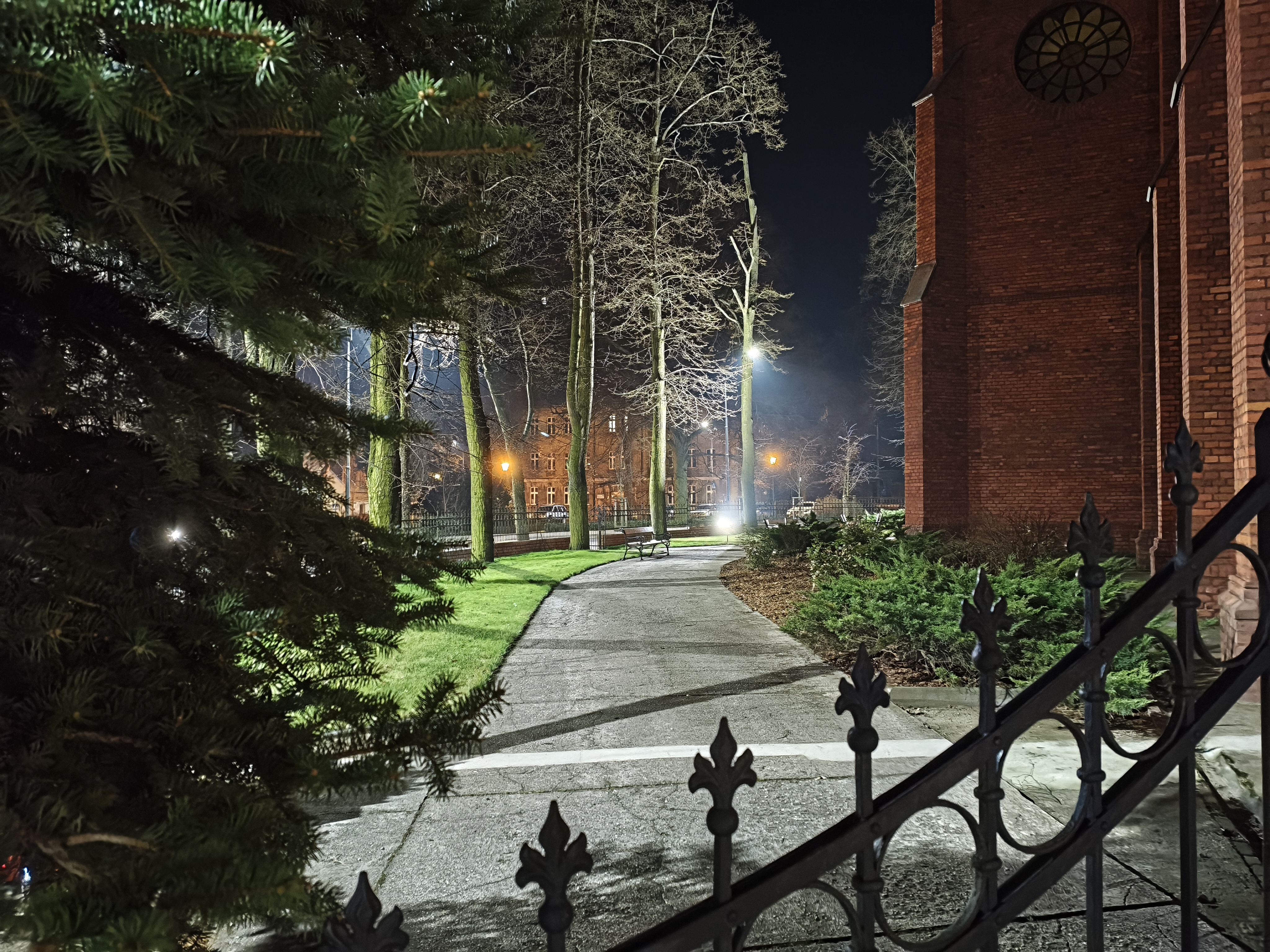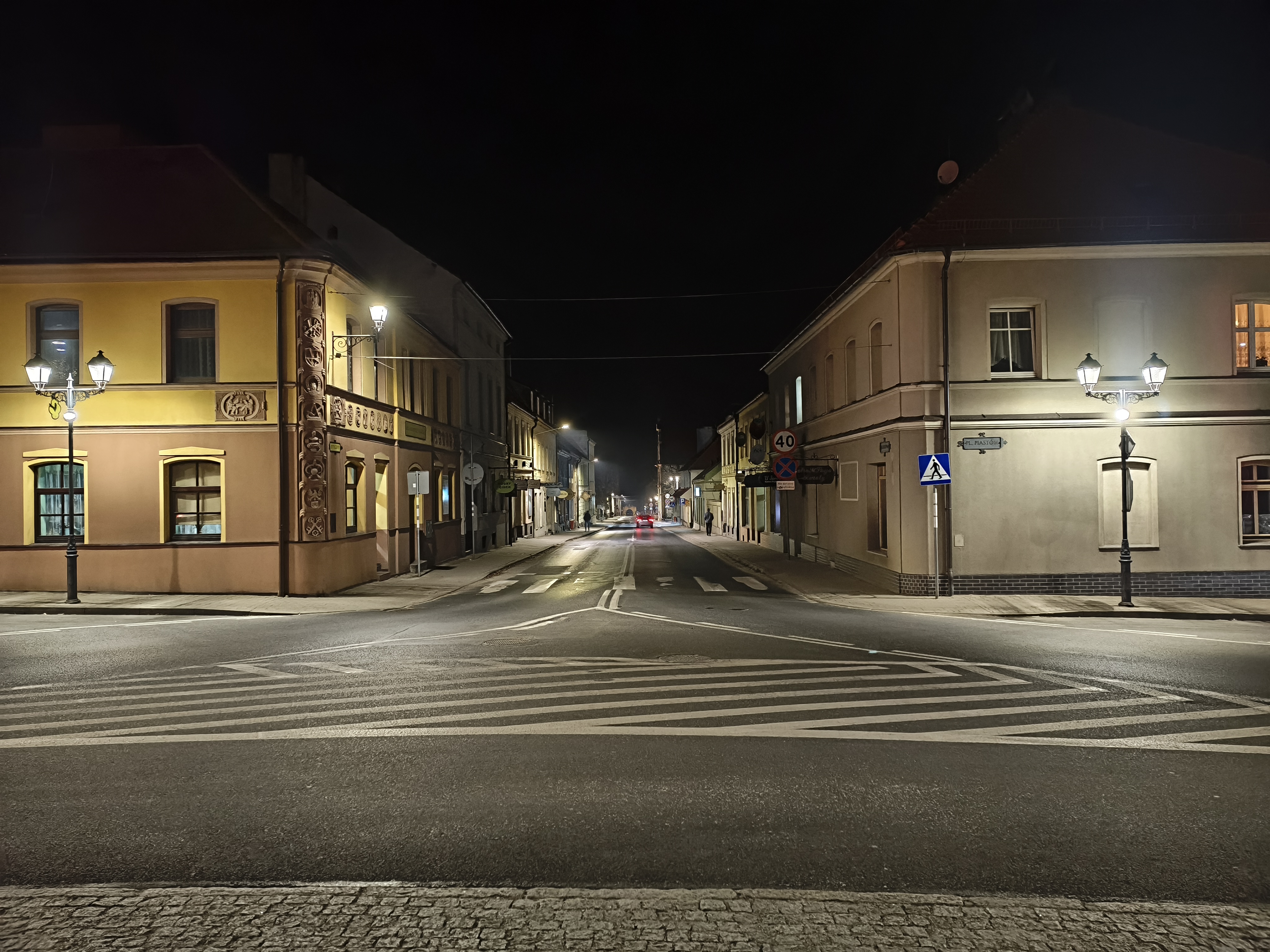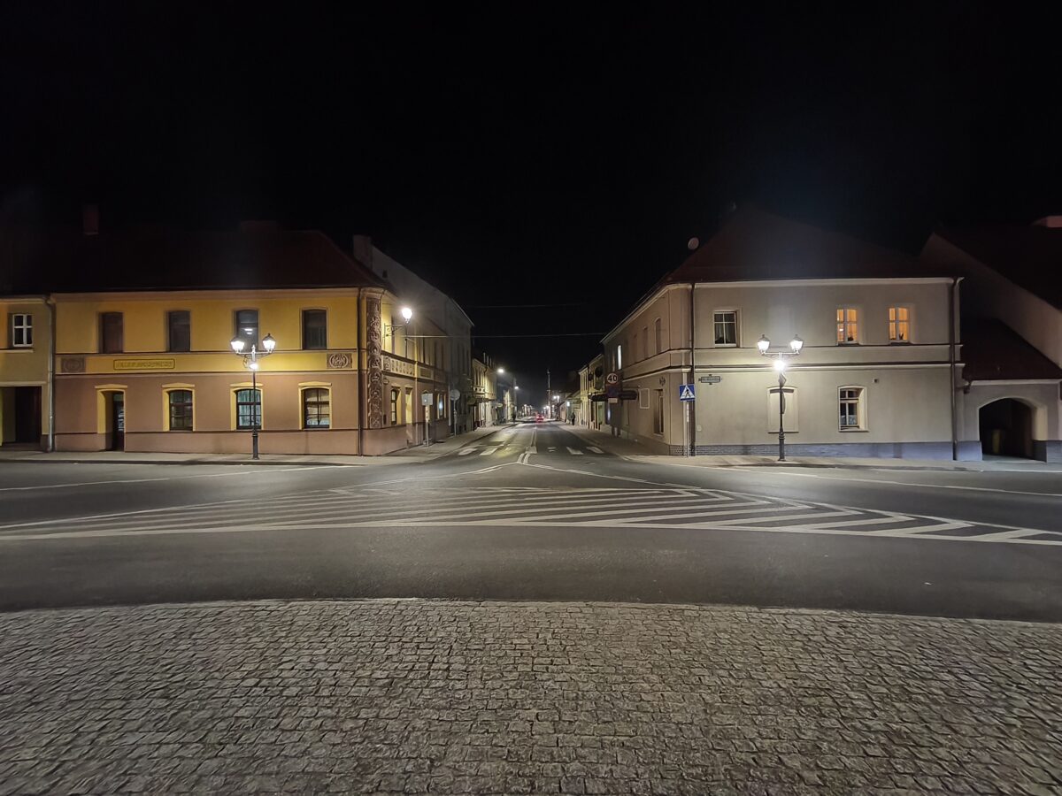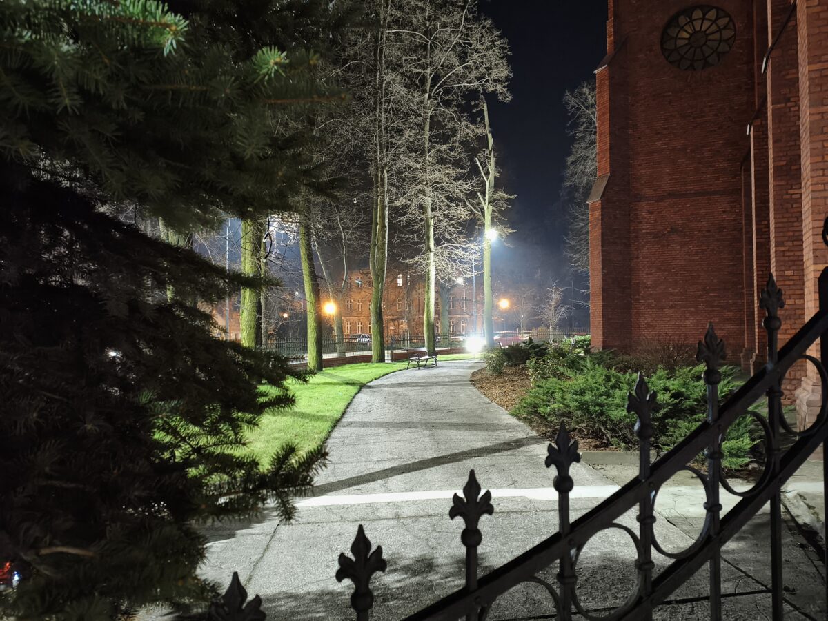 Same zdjęcia wychodzą nieźle z głównego aparatu i tak sobie z ultraszerokiego kąta. W pierwszym przypadku oświetlenie nocne nie prowadzi do dużej ziarnistości i zachowuje większość szczegółów w tle, a w drugim – cóż, rozdzielczości matrycy nie oszukasz.