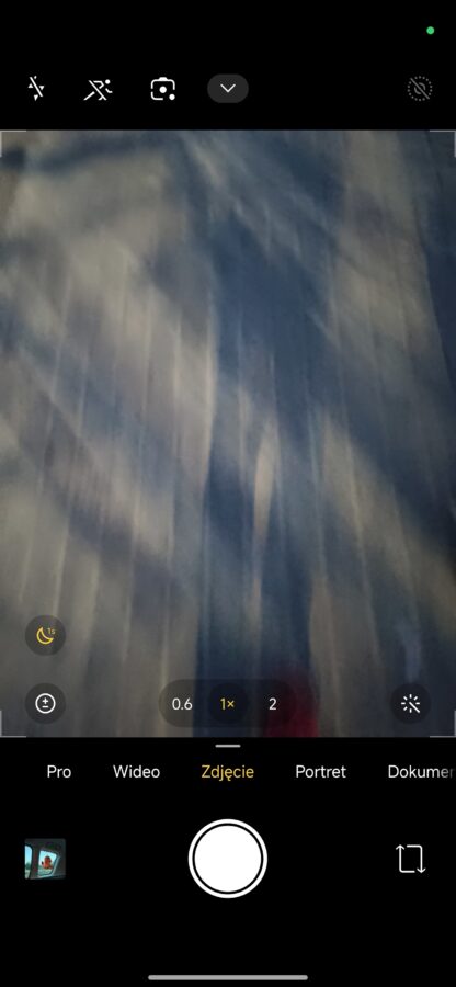 Jest też tryb nocny, którego nie da się włączyć ot tak. Możecie wywrócić całą apkę do góry nogami, zerknąć w każdy parametr – nie ma dedykowanej funkcji, pomagającej wydobyć więcej detali z nocnych kadrów. Jedynym sposobem, aby to zmienić, jest czekanie aż na dole aplikacji pojawi się ikonka informująca o przejściu na dodatkowy czas naświetlania.