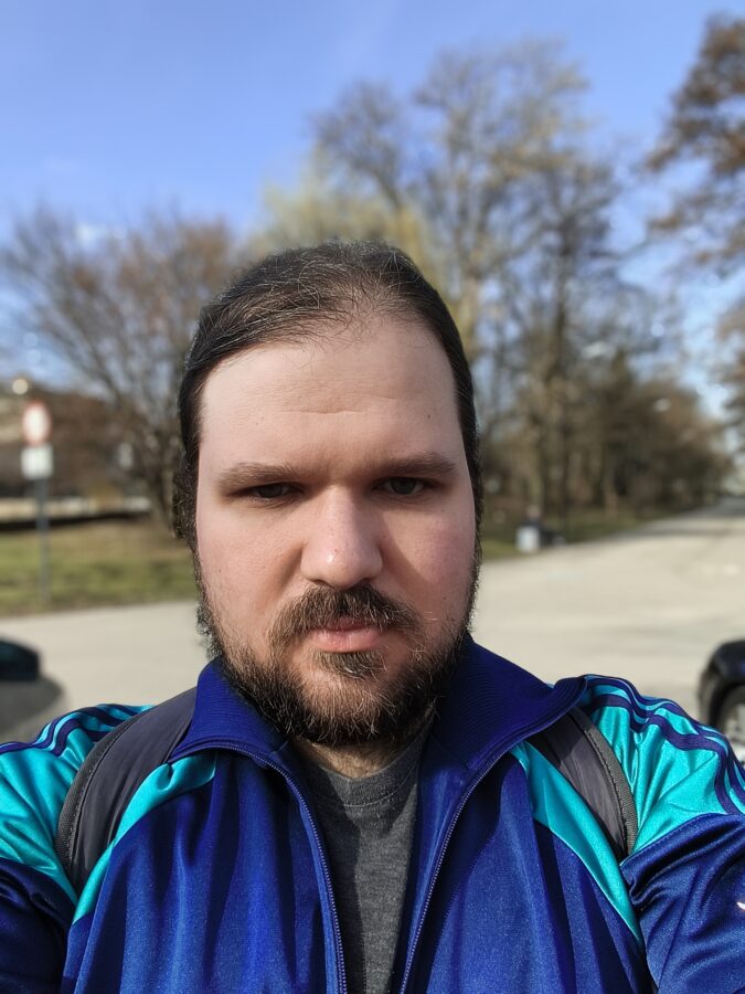 Kamera przednia ma, jak wiadomo, wyłącznie jedno zadanie – oddać jak najwięcej szczegółów twarzy trzymającego i ewentualnie kilku dodatkowych osób mieszczących się w kadrze. Poco X8 Pro Max wypełnia to zadanie w stu procentach – z tym aparatem powinniście dostrzec każdą większą i mniejszą zmarszczkę na sobie (choć nie wiem czy to dobrze 😉).