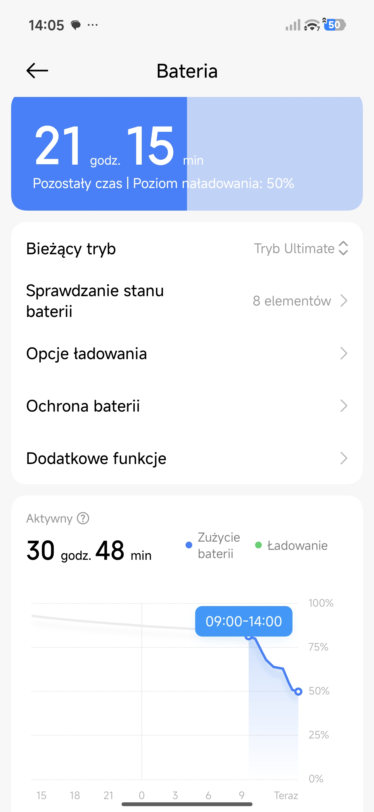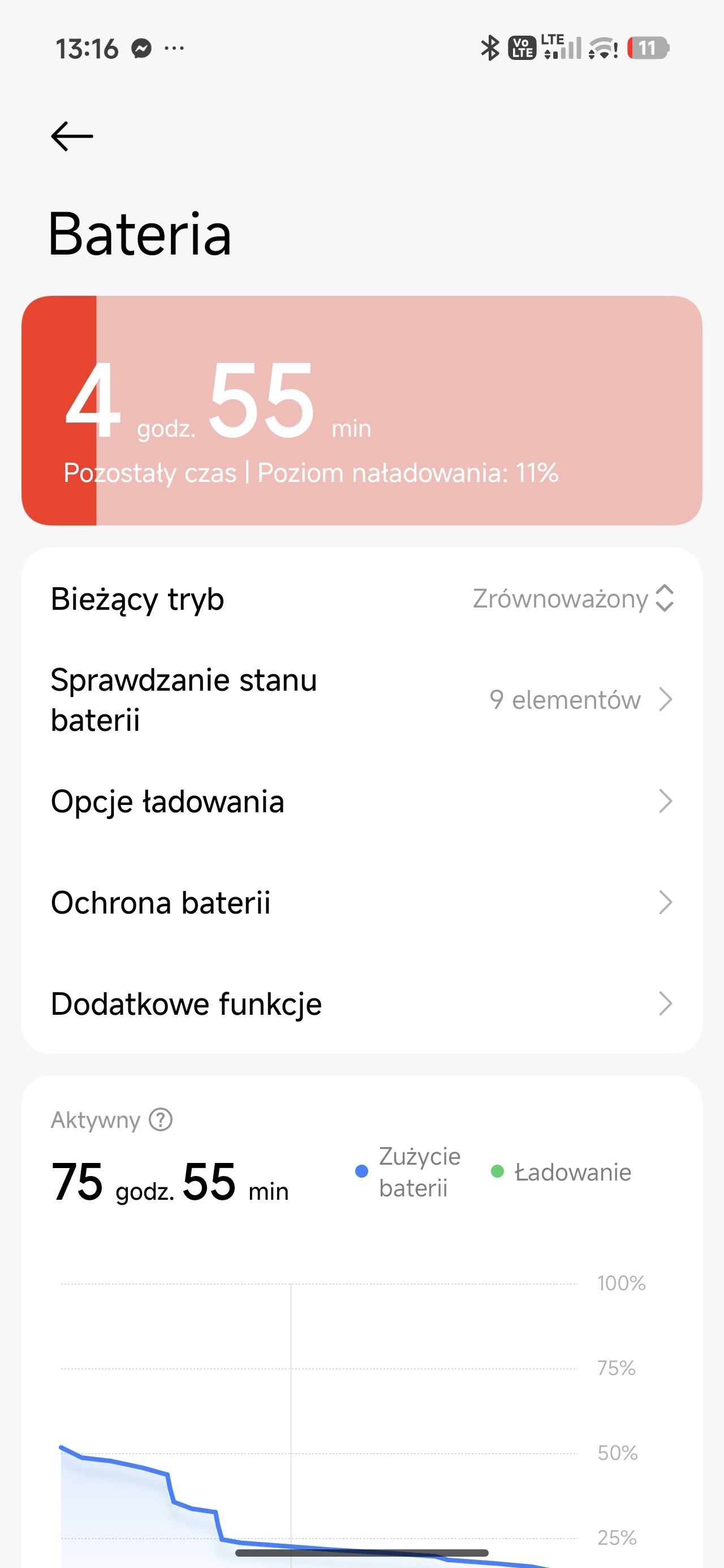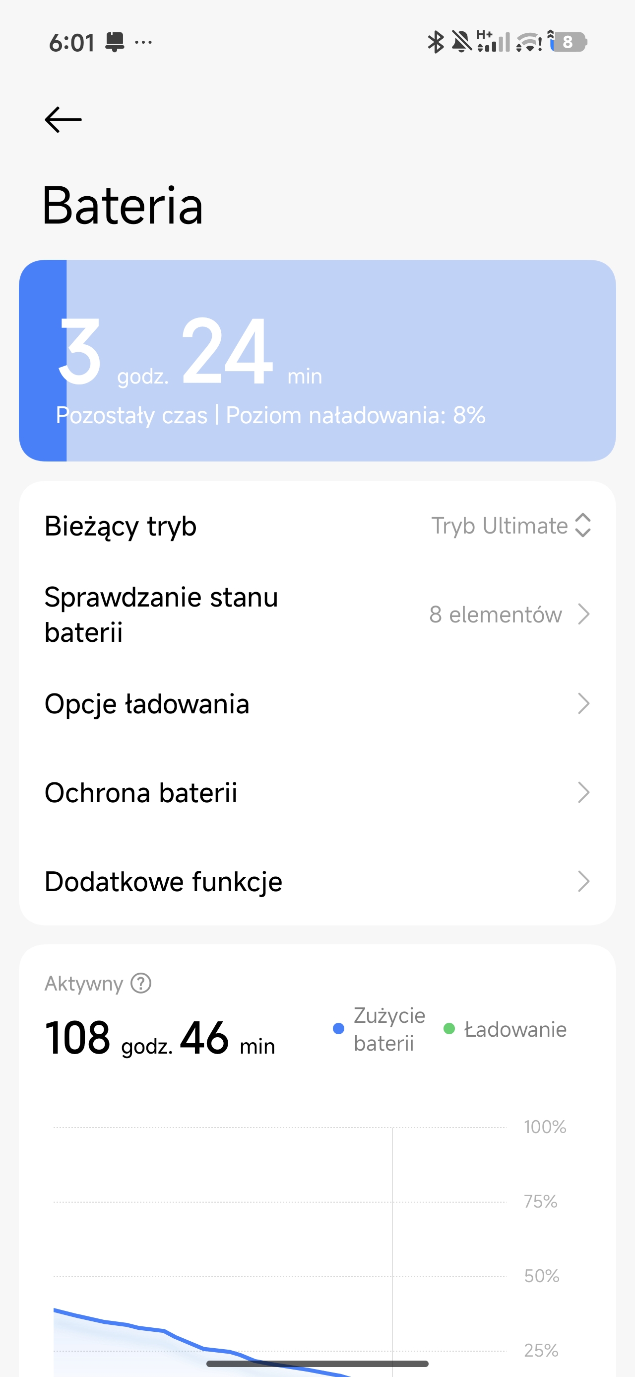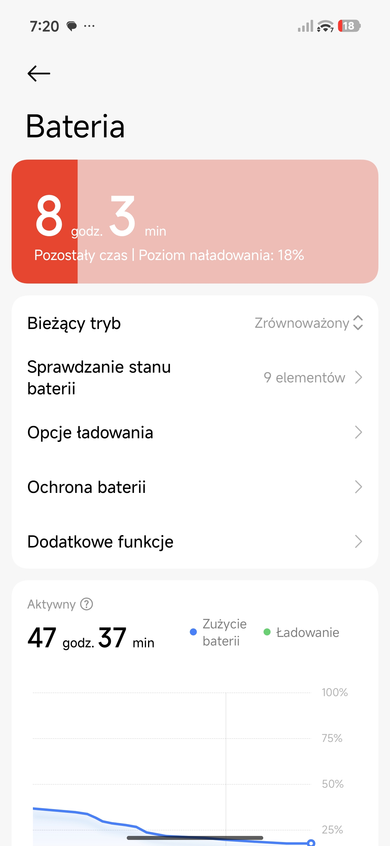Inny scenariusz: bateria nieco zjedzona poprzedniego dnia. Odpalam na dwie godziny wymagające w kwestii grafiki gry. Po tym czasie telefon pokazuje spadek o około 25-30% baterii. Matematycznie oznaczałoby to, że 6 godzin nieprzerwanego grania w Zenless Zone Zero jest absolutnie możliwe z Poco X8 Pro Max.