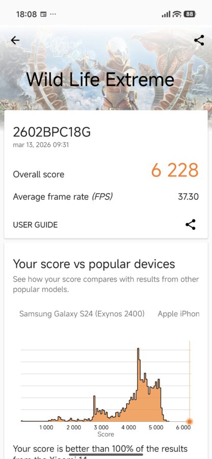 Gdybyście jednak powiedzieli mi, że wystarczy do tego trzy razy mniejsza kwota, nie uwierzyłbym, póki bym nie zobaczył wyników na własne oczy. A tu proszę – wymaksowany Wild Life w 3D Marku, wysoki wynik w wariancie Extreme oraz przekroczenie bariery 10000 punktów w Geekbench 6 – zupełnie jak Xiaomi 17 Ultra za sześć i pół koła.