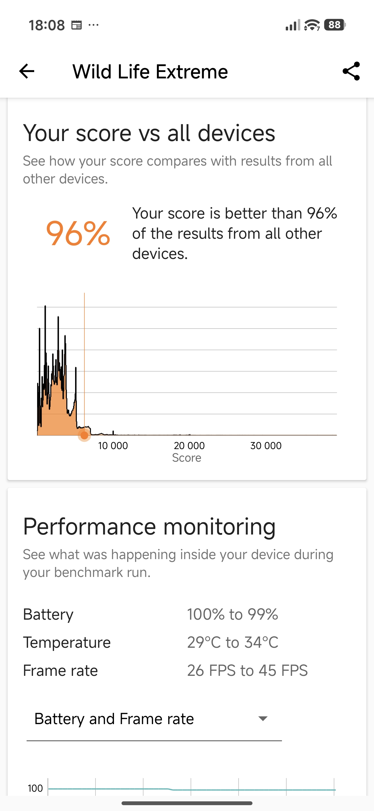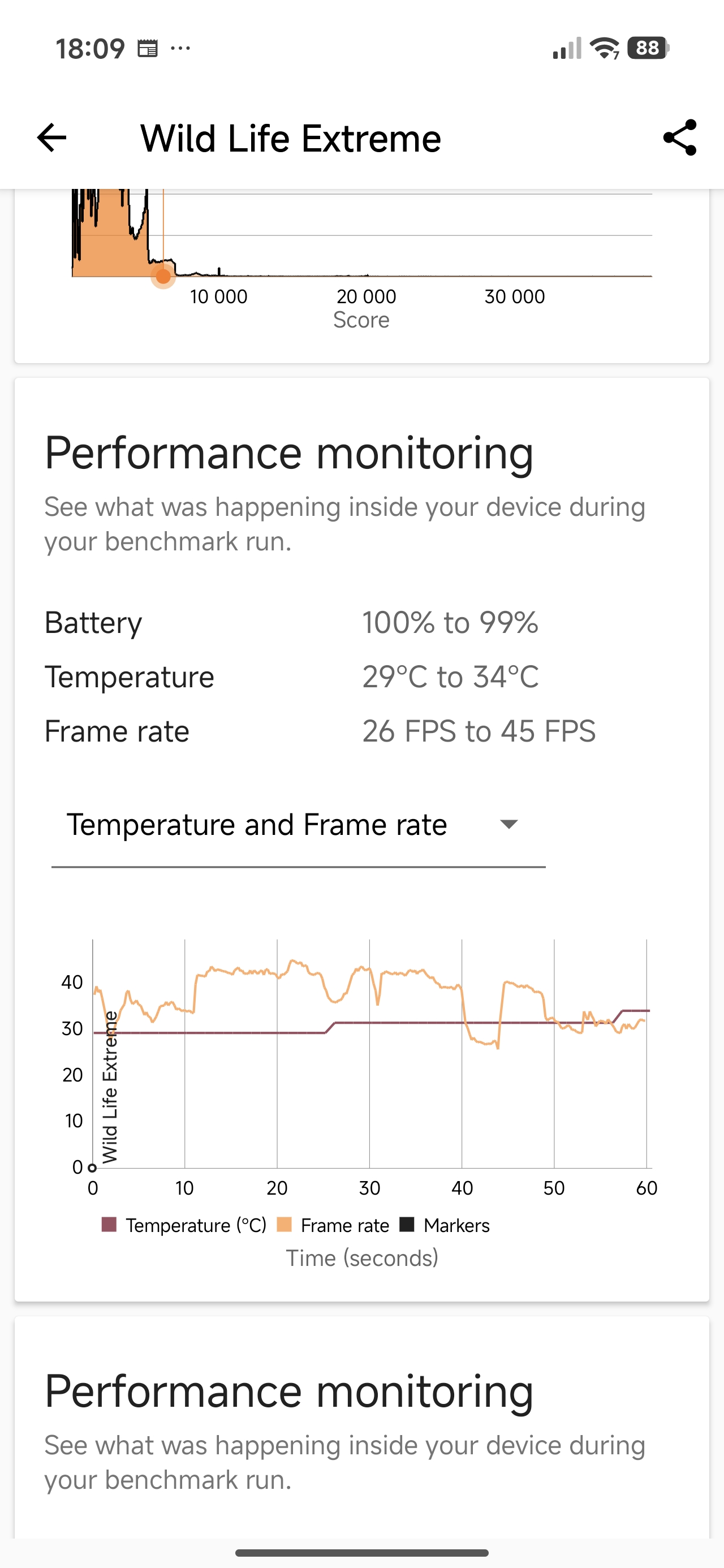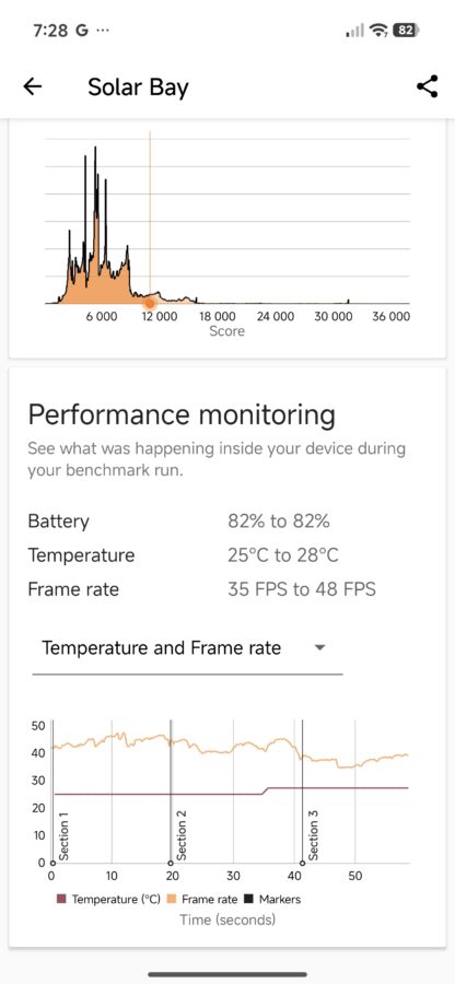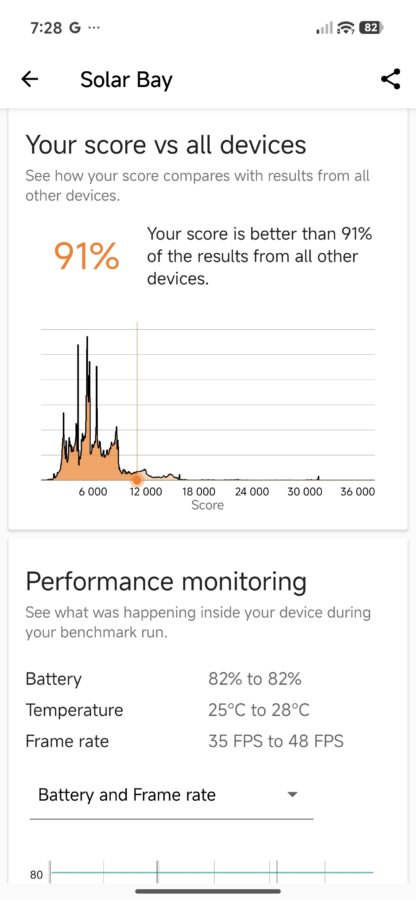 Tak duża moc ma ciekawe przełożenie na gaming. Biorąc na tapet Zenless Zone Zero (maksymalne ustawienia i 60 klatek na sekundę) i Titan Quest (również najwyższe ustawienia, z docelowym 120 fps-ami) godzinna sesja nie robi na urządzeniu wrażenia – zużycie procesora sięgało 50-60%, a telefon nagrzewał się maksymalnie do 38 stopni. Szkoda tylko, że dedykowana nakładka dla graczy nie jest przesadnie rozbudowana – mamy jedynie podgląd CPU+klatkarz, czyszczenie pamięci, modulator głosu, kombo nagrywanie + screenshoty oraz minutnik.