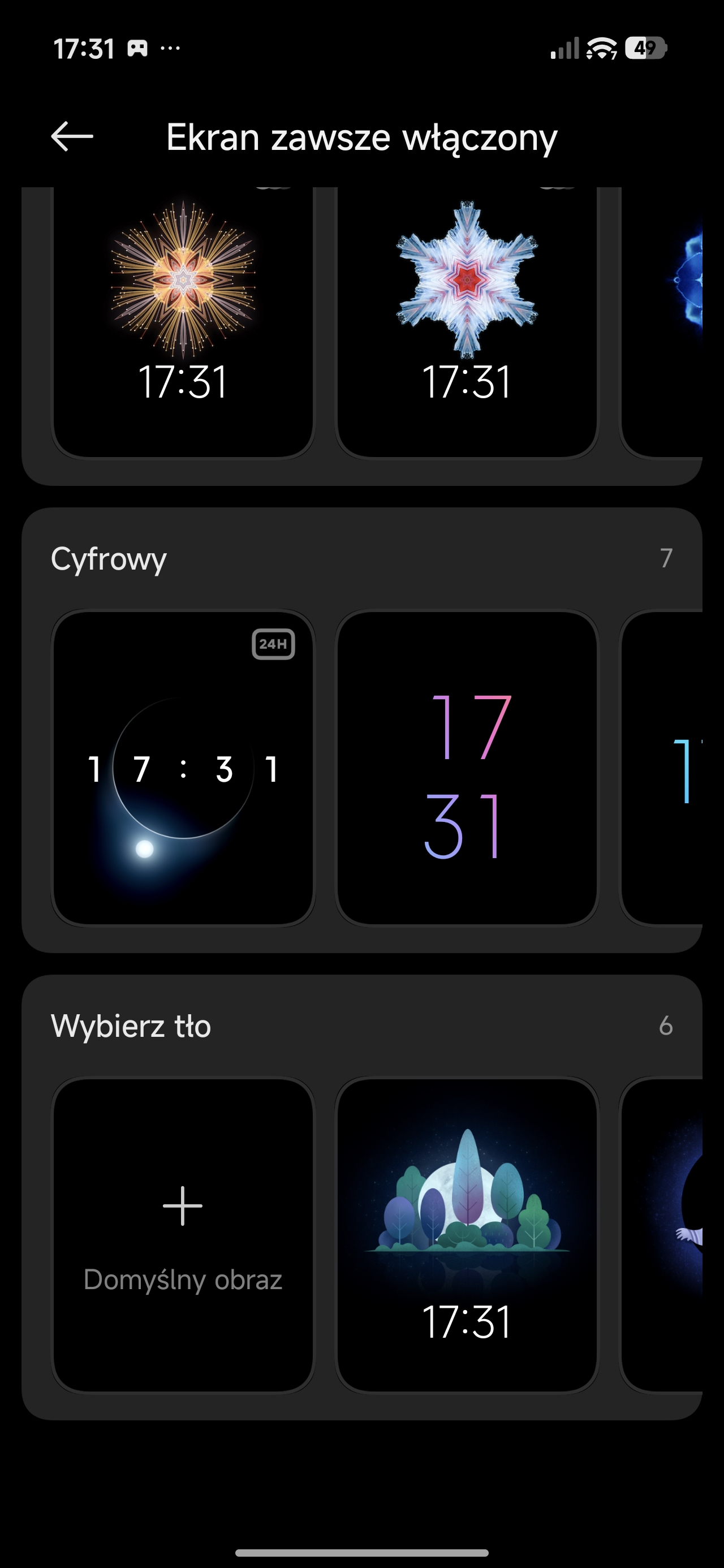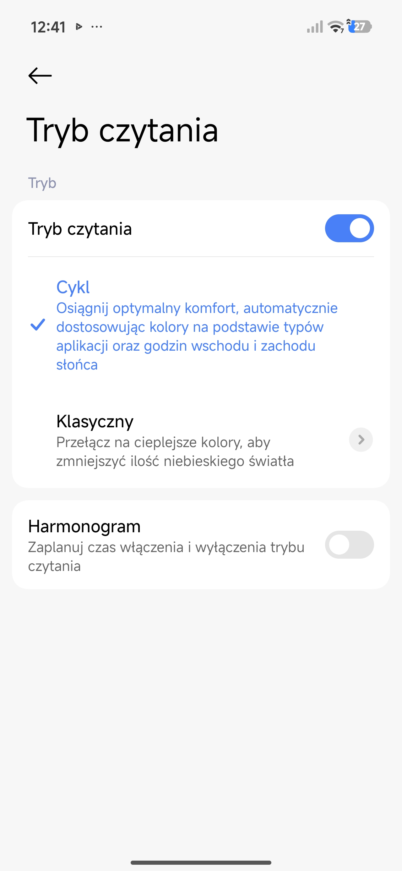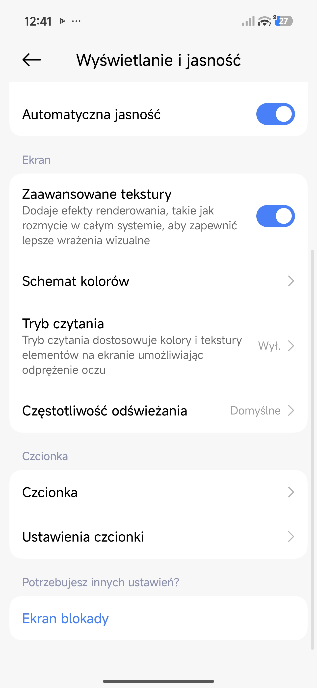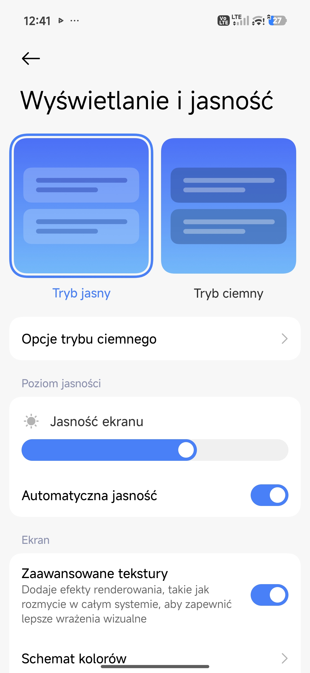 Lista możliwości personalizacji ustawień wyświetlacza nie jest zbyt duża, ale za to wystarczająca. Oprócz oczywistości pokroju trybu ciemnego jest też funkcja ograniczająca emisję światła niebieskiego, personalizacja w trybie Always on Display oraz dwa schematy kolorów z trzema predefiniowanymi „temperaturami”.