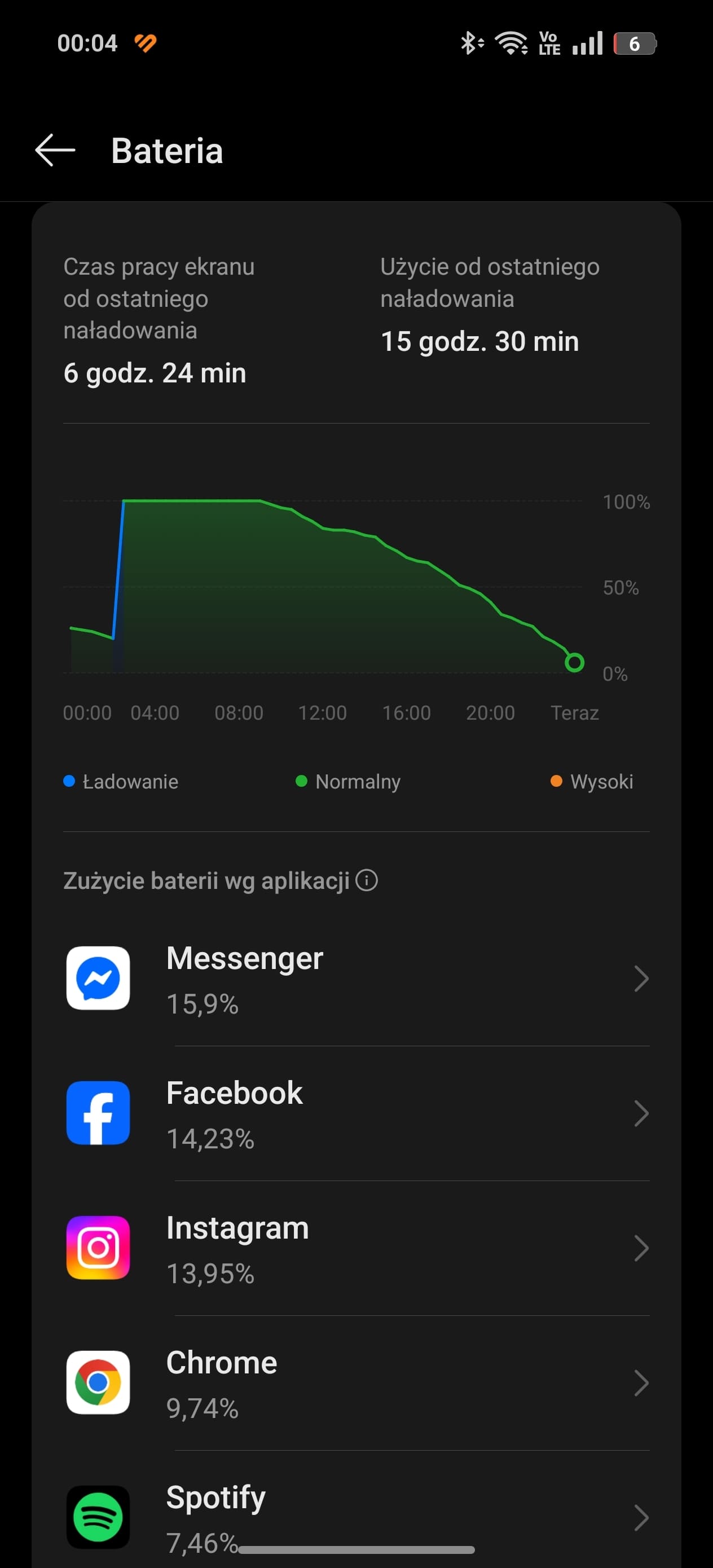 Standardowo pod koniec dnia na WiFi potrafię mieć zapas 50%, podczas gdy SoT wynosi 4h. Na danych mobilnych też nie udało mi się rozładować go w jeden dzień – kończyłam dni z SoT na poziomie 3-4 h, mając jeszcze zapas energii 20, a nawet sporo więcej procent. W trybie mieszanym udało się nawet przekroczyć 5h SoT i dzień zakończyć z zapasem 33%.