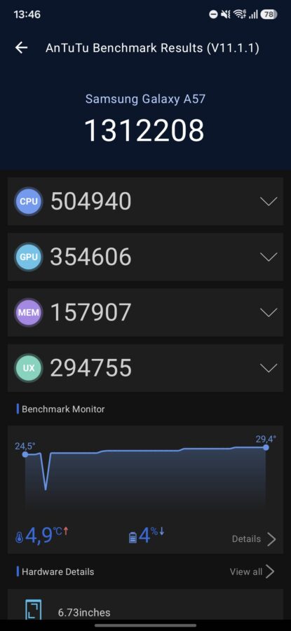 Wyniki testów syntetycznych jasno pokazują nam, że Galaxy A57 oferuje wyższą wydajność, zarówno samego procesora, jak i układu graficznego. Przy tym, o ile te różnice w liczbach nie wydają się drastyczne, tak w praktyce, podczas użytkowania, da się odczuć to niekiedy dość mocno. Ale po kolei.