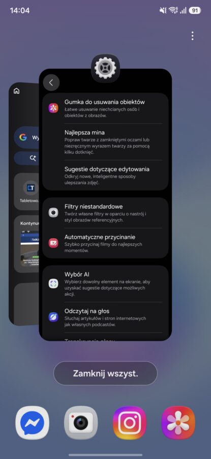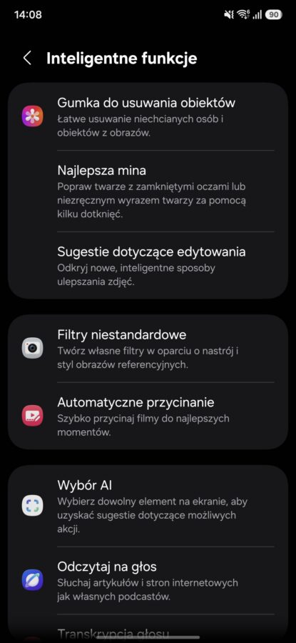 Do dyspozycji mamy tutaj – między innymi – gumkę do usuwania elementów i odbić ze zdjęć w aplikacji Galerii, opcję Najlepsza mina poprawiającą zdjęcia grupowe, tworzenie niestandardowych filtrów w aparacie, funkcję automatycznego przycinania wideo oraz czytanie przez głos AI stron internetowych w przeglądarce Samsung Internet. Dodano również transkrypcję nagrań głosowych na tekst, czego nie było w modelach z zeszłego roku.