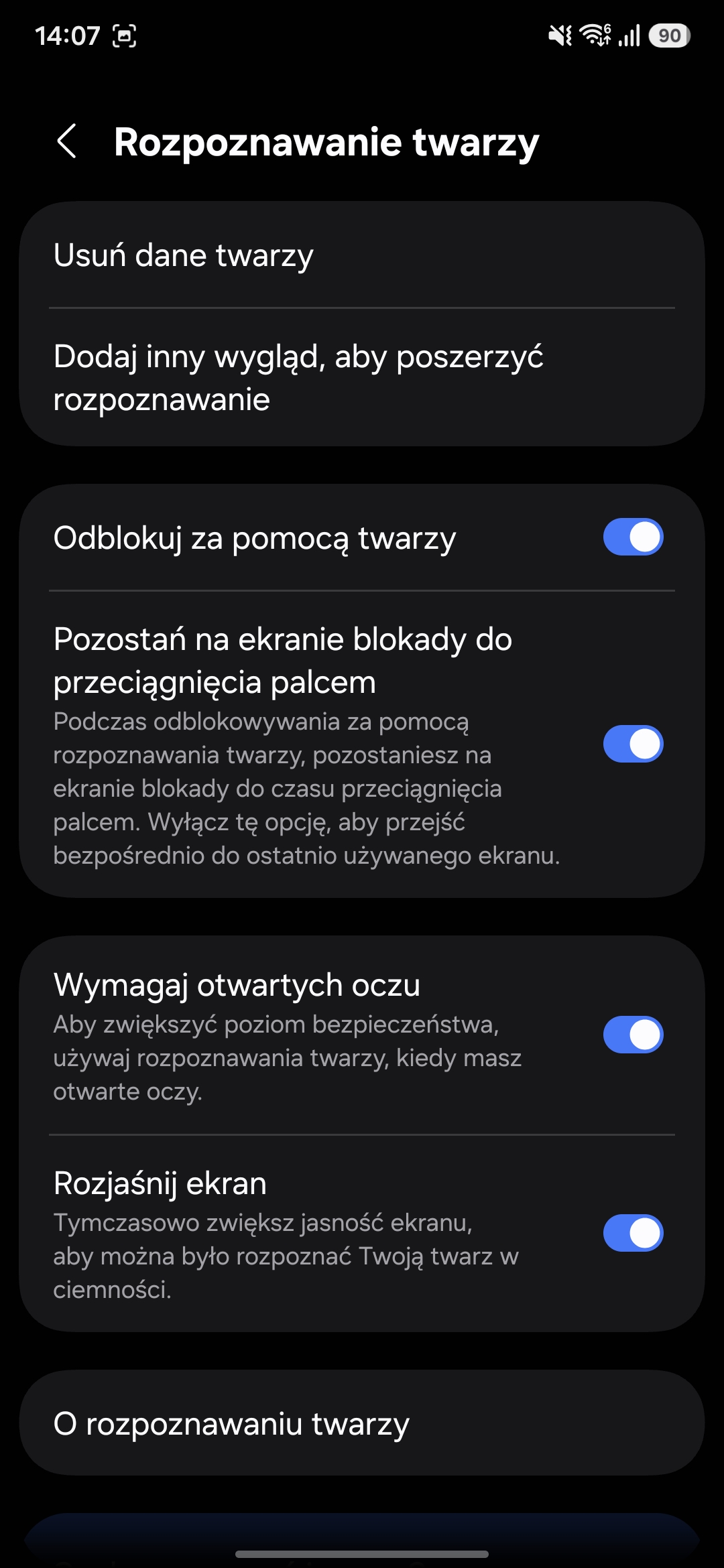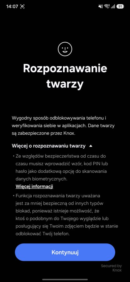Bez zaskoczenia, alternatywna forma blokady ekranu to rozpoznawanie twarzy, wykorzystujące skan 2D z przedniego aparatu. Działa ona podobnie, jak w większości smartfonów z takim rozwiązaniem – w dobrym oświetleniu, gdy nasza twarz jest odpowiednio widoczna, szybkość i bezbłędność rozpoznawania stoi na całkiem dobrym poziomie, choć nie rewelacyjnym poziomie.
