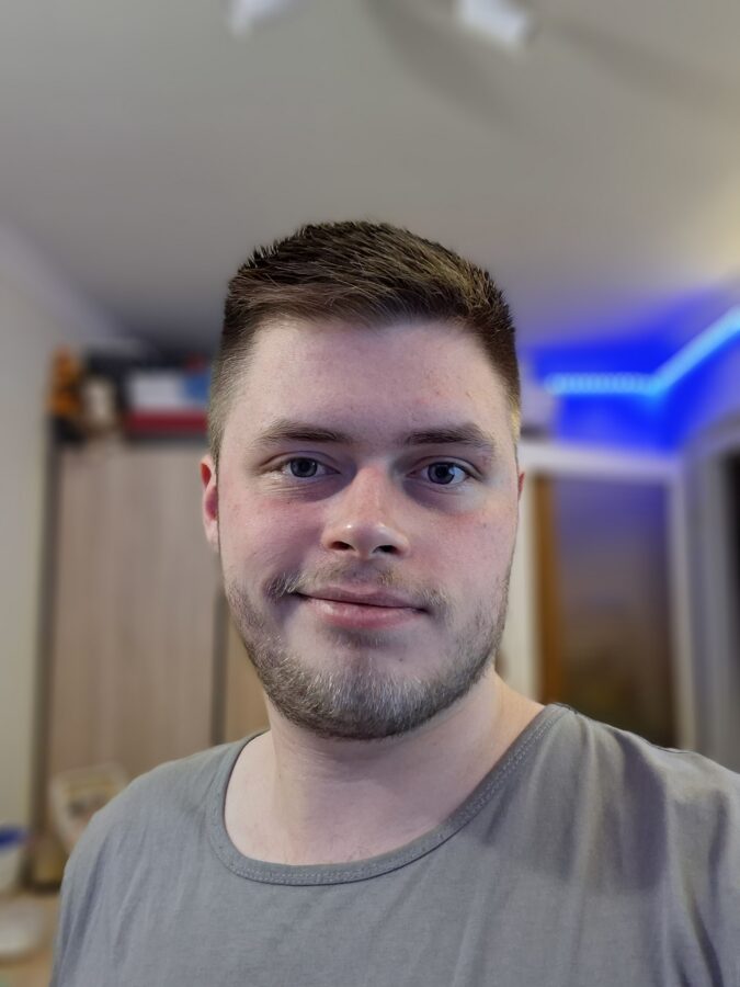 Selfie w obu smartfonach wykonamy z wykorzystaniem aparatu o rozdzielczości 12 Mpix (f/2.2), a ich jakość jest identyczna. Wyglądają one więc po prostu dobrze – koloryt skóry jest relatywnie bliski naturalnemu, ostrość bardzo poprawna, szczegółowość wystarczająco dobra, a jasne punkty (np. niebo czy okno) nie są całkowicie przepalone.