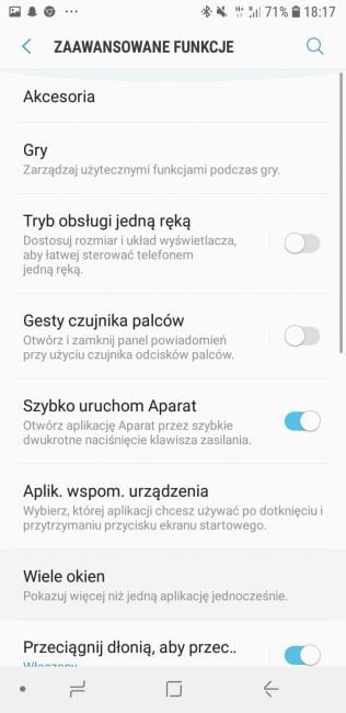 Przydatną funkcją jest też tryb obsługi jedną ręką. Możemy zmniejszyć cały interfejs systemu do stanowczo mniejszego okienka, co przydaje się w sytuacjach, gdy chcemy coś na szybko zrobić mając wolną tylko jedną rękę. Tryb ten możemy uruchomić na dwa sposoby: korzystając z gestu przesunięcia od prawej lub lewej dolnej krawędzi w stronę środka, albo klikając trzy razy klawisz home.