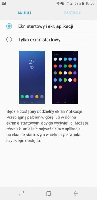 Z innych opcji personalizacji możemy skorzystać z wyboru stylu ekranu głównego, czyli czy wszystkie aplikacje są porozrzucane po pulpitach, czy schowane na liście aplikacji. Możemy również włączyć lub wyłączyć klawisz wszystkich aplikacji oraz wybrać rozmiar siatki ikon (dostępne są 4×5, 4×6, 5×5 oraz 5×6).