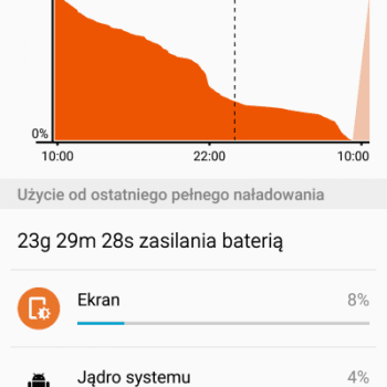 Jak spisuje się akumulator – to z pewnością jest jedno z pytań, na które chcecie znać odpowiedź. W moich rękach Galaxy S6 działał od niecałych 10 godzin bardzo intensywnego użytkowania do 24 godzin średniego, z czego średnio na włączonym ekranie (SoT – Screen on Time) 2,5 godziny – rzadko kiedy udawało mi się ten pułap przeskoczyć, o czym możecie się przekonać patrząc na załączone poniżej screeny. I mowa tu o działaniu z włączonym LTE, WiFi (gdy byłam w domu) i automatyczną jasnością ekranu (najczęściej w dolnych granicach skali) – bez GPS czy Bluetooth.