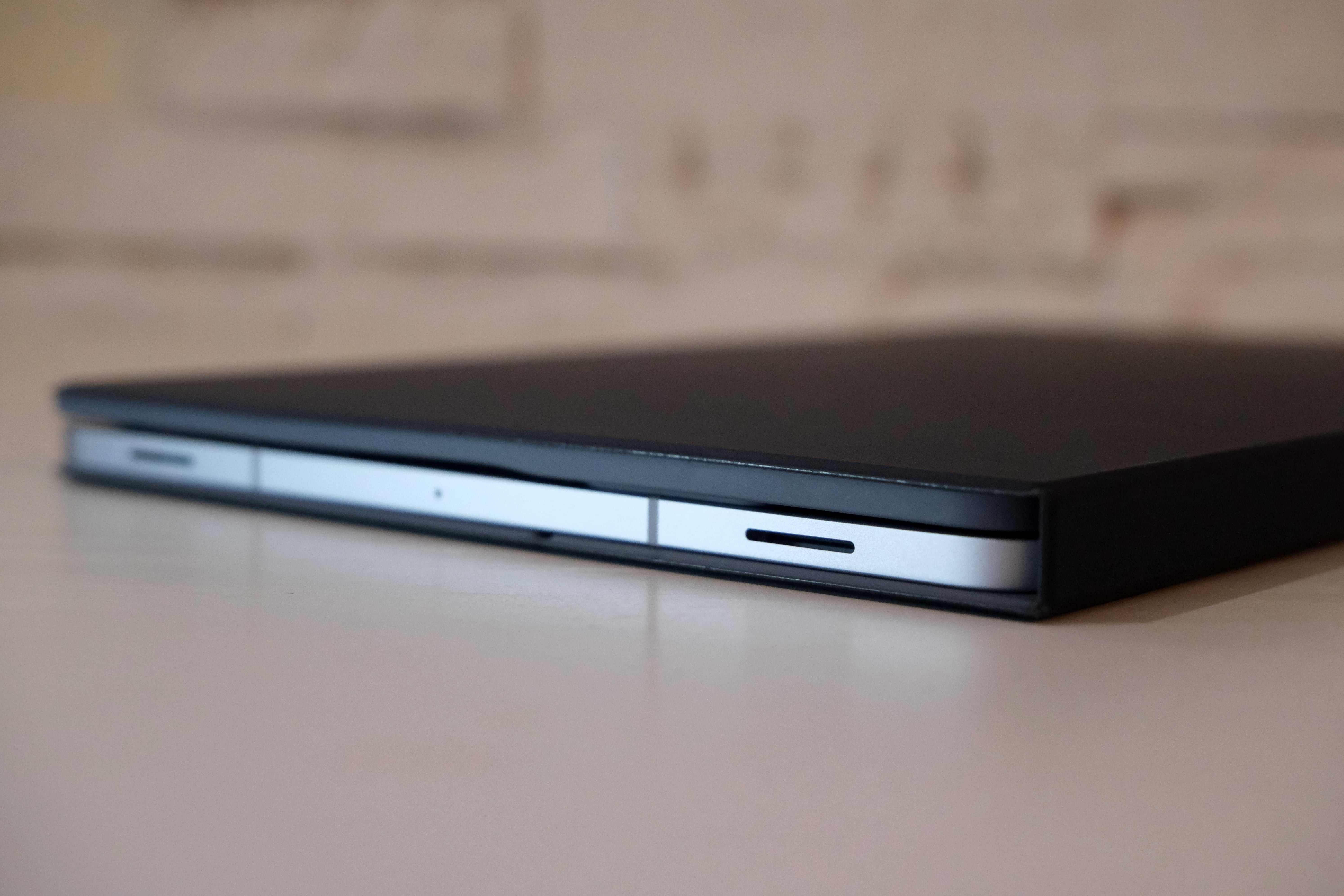 To, co robi wrażenie, to smukłość tego tabletu – zaledwie 5,5 milimetra, ale dzięki świetnemu wyprofilowaniu trzyma się go bardzo wygodnie. Waga całości również na plus – 469 gramów.
