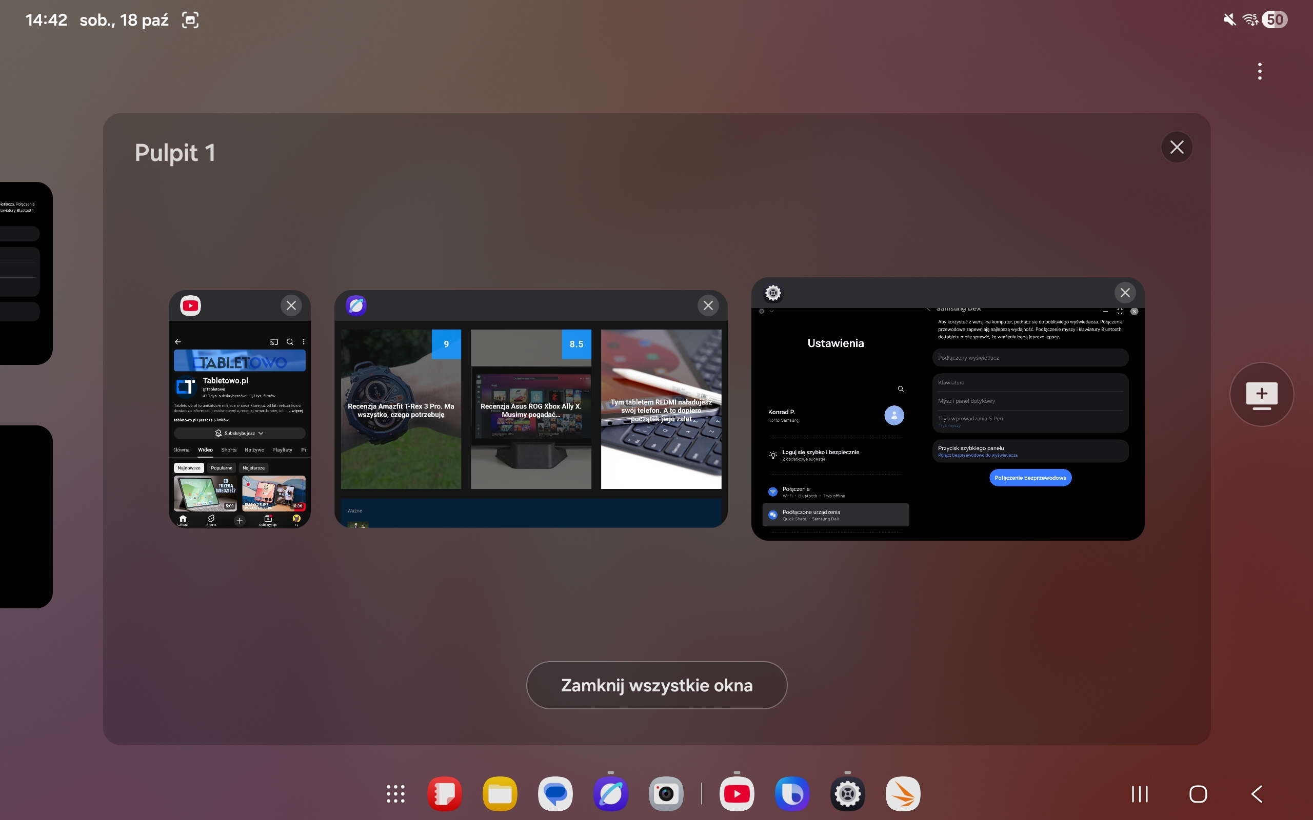 Z ciekawszych rzeczy warto wspomnieć o Samsung DeX. To moje drugie poważne podejście do tego pomysłu Koreańczyków. Po raz pierwszy miałem okazję przetestować DeXa mniej więcej dwa lata temu i wtedy trudno było mi go uznać za w pełni dopracowane i przemyślane rozwiązanie. Próba pogodzenia tabletu z „okienkami” aplikacji na dłuższą metę nie była tak wygodna jak w przypadku innych systemów operacyjnych.