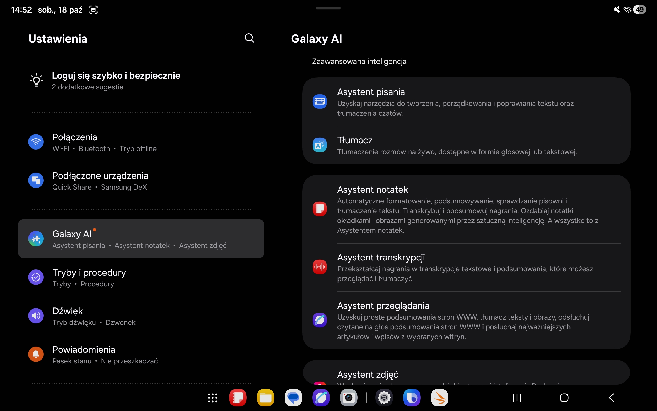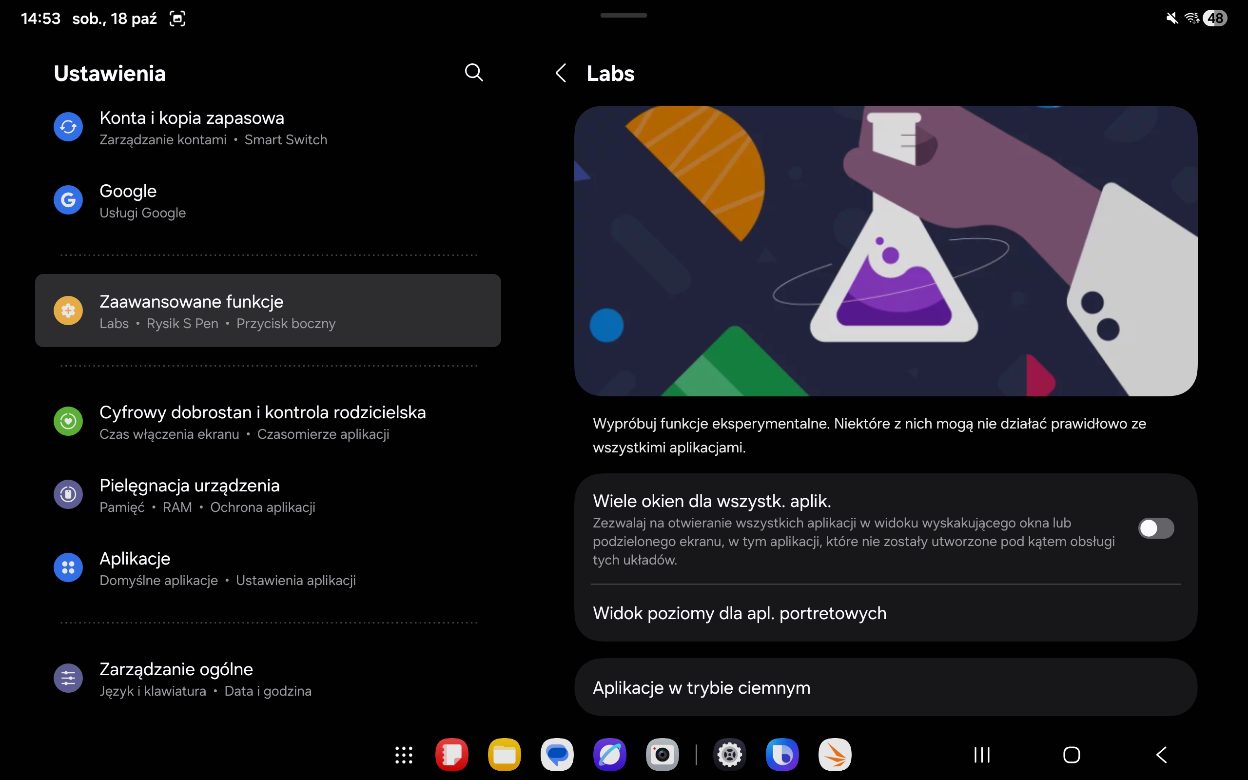 Oprogramowanie Samsunga też dowozi, bez żadnych większych zaskoczeń. Mamy tu do czynienia z dobrze znanym fanom tej marki One UI w wersji 8.0 na Androidzie 16. Jest to nakładka dopracowana, bezbłędnie przetłumaczona (lubię o tym wspominać, po częstej opieszałości w tym temacie niektórych azjatyckich producentów – na ciebie patrzę, Blackview Tab 13!) i po prostu dobrze przemyślana, czego trudno nie docenić.