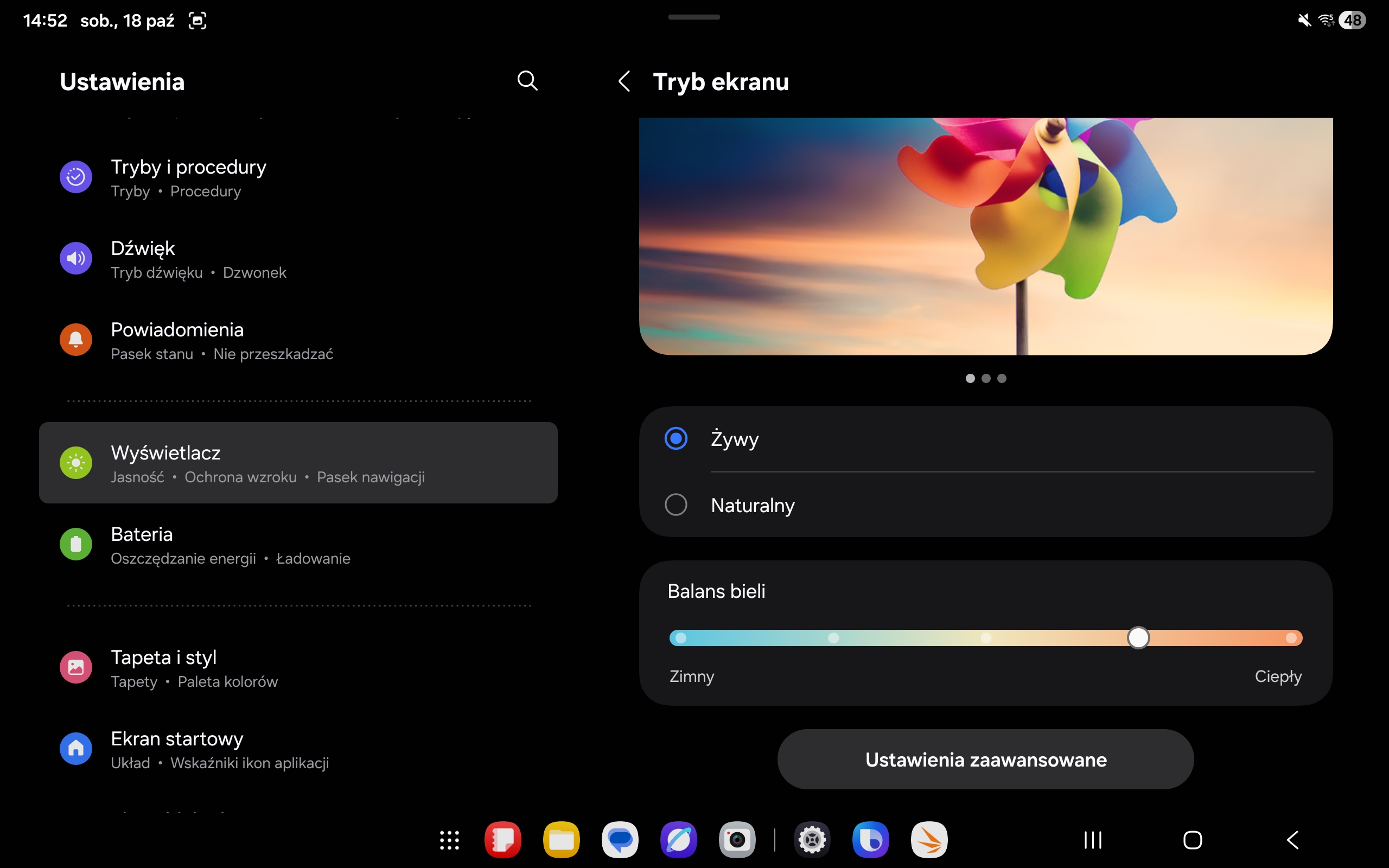 Jedyne, co mnie zaskoczyło, to to, że pierwszy raz w przypadku tabletu czy smartfona Samsunga, musiałem wejść w zaawansowane opcje personalizacji obrazu i zwiększyć delikatnie kilka parametrów. Głównie podkręciłem balans bieli i nasycenie – w domyślnych wartościach mam wrażenie, że Galaxy Tab S11 był zaskakująco zimny i wyprany z kolorów.