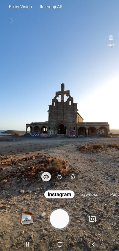 W aparacie znajdziemy tryb Instagram, za pomocą którego możemy zrobić bardzo dobrej jakości zdjęcie np. na Insta Story, bez ucinania jakości (co często ma miejsce). Dodatkowym plusem jest to, że można wykorzystać każdy z trzech obiektywów (co w domyślnej aplikacji Instagramu nie jest możliwe), a zdjęcia zapisują się też w galerii telefonu. W aparacie jest też standardowo tryb Live Focus z kilkoma różnymi efektami – mi najbardziej przypadł do gustu chyba ten z opcją zrobienia szarego tła i wyeksponowania pierwszego, kolorowego planu.