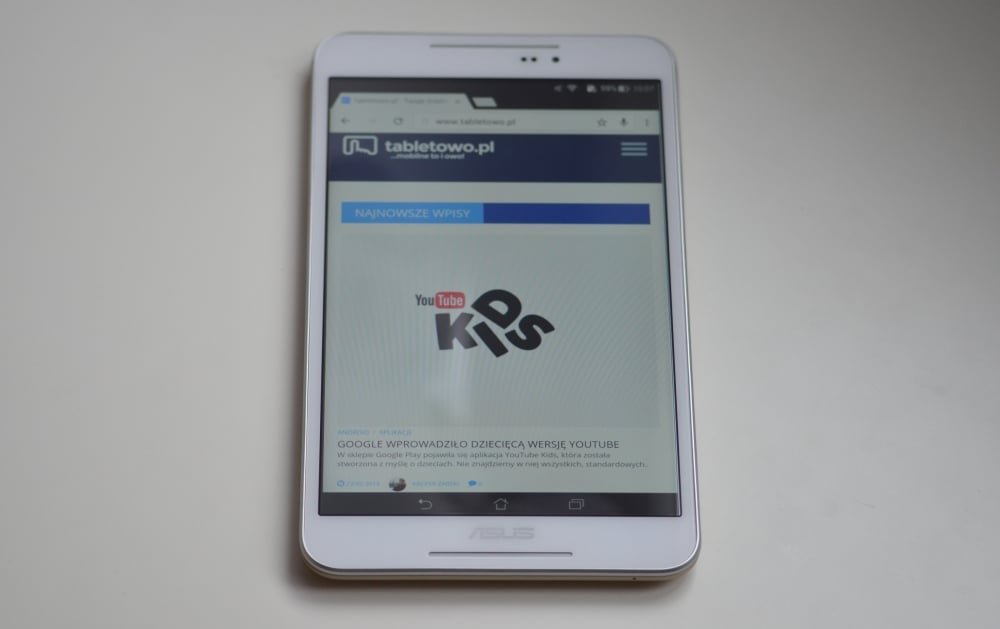 Podczas oglądania wideo, zarówno wgranego do pamięci tabletu, jak i z YouTube czy aplikacji typu Ipla, Player czy innych VOD, istotną rolę odgrywają głośniki. W Asusie Fonepad 8 FE380 mamy frontowe głośniki stereo, które grają bardzo dobrze. Subiektywnie odniosłam wrażenie, że głośniki te są jednymi z lepszych, z jakimi miałam do czynienia w ostatnim czasie. A dodatkowo dość głośne – pomiar wykazał 71 decybeli. Co ważne, nawet na najgłośniejszym ustawieniu głośniki wydają z siebie czysty dźwięk, bez charakterystycznego dla urządzeń mobilnych trzeszczenia czy charczenia.