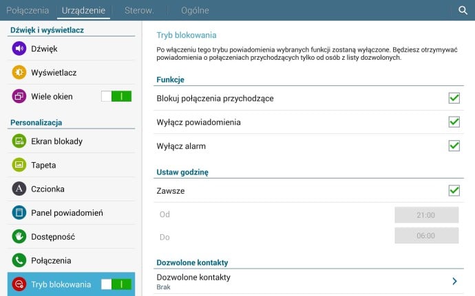 Wśród nich na pierwszy plan wysuwa się tryb blokowania, który umożliwia wyłączenie wszelkiego rodzaju powiadomień w wybranym czasie. Co ważne – możemy utworzyć listę dozwolonych kontaktów, od których połączenia i mejle będą przychodziły mimo włączonego trybu.