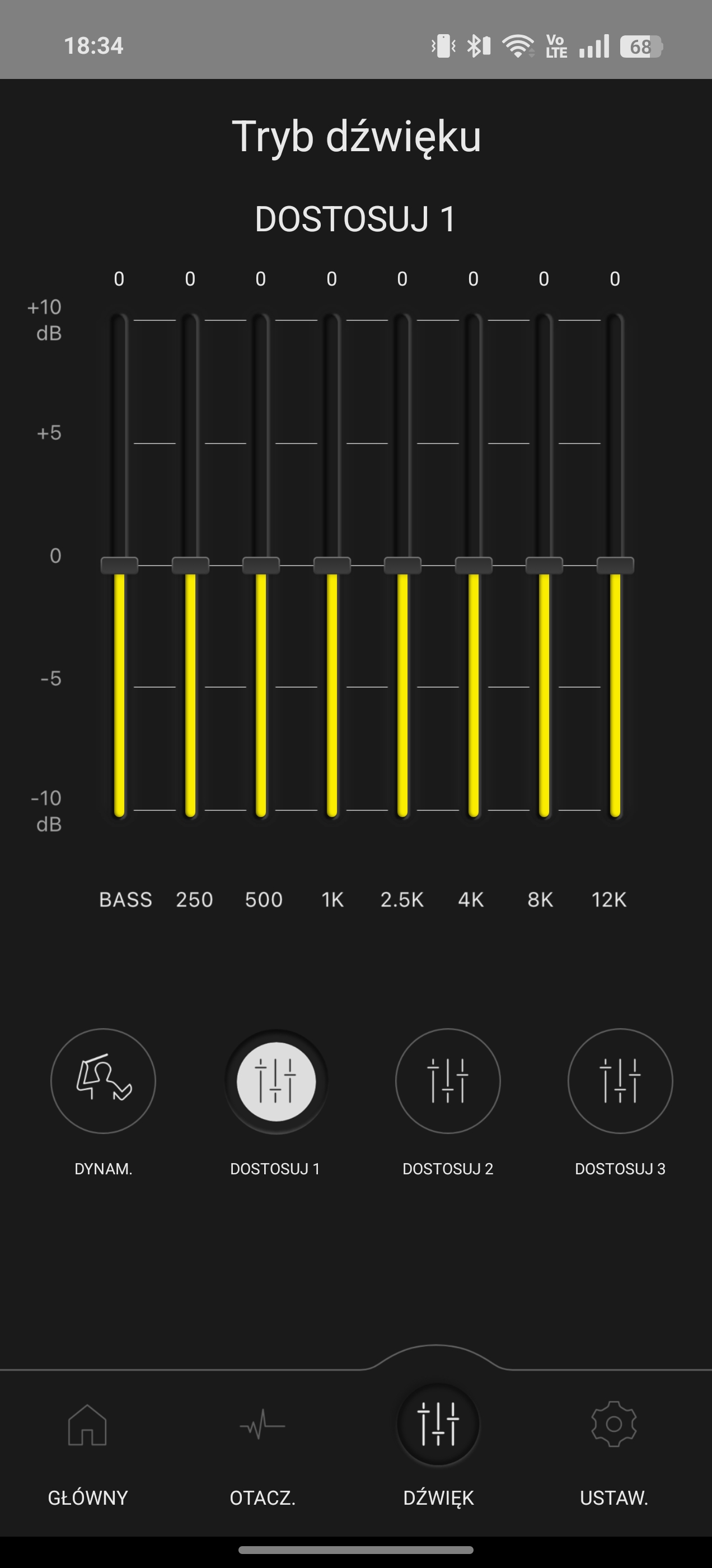 Dostępnych funkcji i ustawień jest wręcz mnóstwo i szczegółowe opisywanie ich pochłonęłoby co najmniej pół recenzji. Przejdźmy więc przez to, co najważniejsze. Zaczynając od tych najbardziej potrzebnych opcji, mamy tu oczywiście przełączanie trybów ANC, korektor dźwięku z pięcioma gotowymi presetami (poza tym domyślnym, wypłaszczonym) i możliwością stworzenia trzech własnych bazując na 8-pasmowym equalizerze.