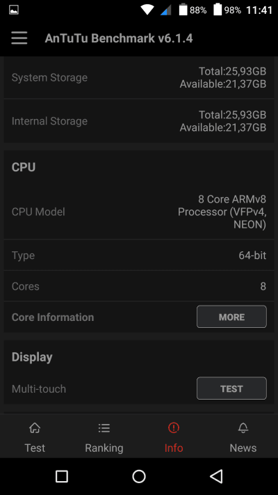 Jeśli będziecie chcieli pograć na Live 3 Plus, możecie odpalić zarówno Asphalt 8: Airborne, jak i Dead Trigger 2 czy Real Racing 3 – wszystkie zapewniają rozgrywkę na dobrym, grywalnym poziomie, choć domyślnie uruchamiają się na średnich lub nawet niskich detalach. Z kolei pamięć wewnętrzna, której dla użytkownika zostaje 25,93GB, zapewnia możliwość pobrania wielu tytułów. Pamięć dodatkowo można rozszerzyć dzięki slotowi kart microSD. Nie można jednak przenosić pełnych aplikacji na kartę pamięci.