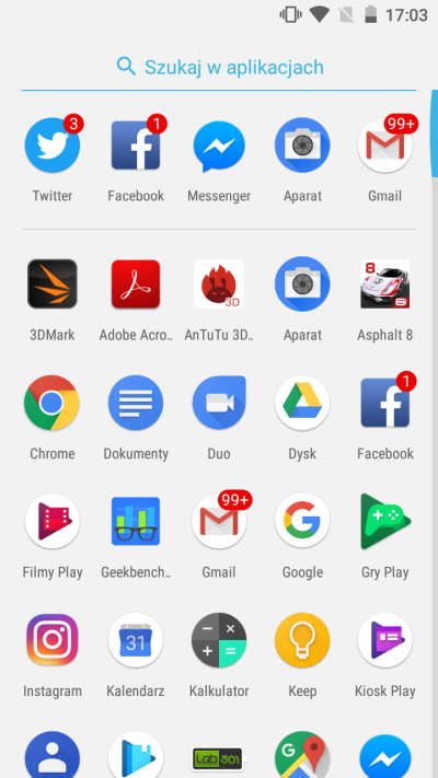 Jeśli chodzi o samo oprogramowanie, to jest to czysty Android, na temat którego nie trzeba się raczej rozpisywać. Wspomnę jedynie, że ikony są zaokrąglone, a dostęp do pełnej listy aplikacji odbywa się przez wysunięcie ich od dołu ku górze ekranu – podobnie, jak we flagowcach Samsunga. Wśród niewielu preinstalowanych aplikacji znajdziemy radio FM. Jak przystało na Nougata, jest możliwość korzystania z aplikacji w dwóch oknach obok siebie. Nie ma natomiast wybudzania ekranu podwójnym tapnięciem.