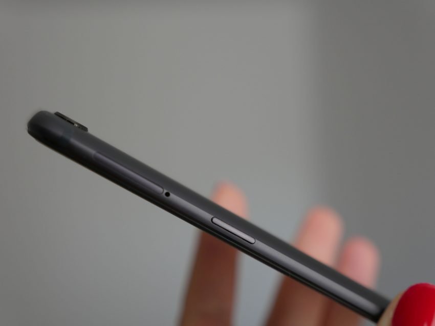 Rozmieszczenie portów, złączy i przycisków jest raczej standardowe. Na prawym boku znajdziemy szufladę skrywającą w sobie dwa sloty kart nanoSIM oraz nieco niżej włącznik (dość głośny i słabo wyrobiony, początkowo dość trudno „chodził”). Na lewym boku z kolei umieszczone zostały przyciski do regulacji głośności oraz, powyżej, dodatkowy przycisk fizyczny, znany też z iPhone’a – do zmiany trybów dźwięku (są trzy stopnie: normalny, cichy i nie przeszkadzać). Idąc dalej – górna krawędź nie została zagospodarowana, natomiast dolna skrywa w sobie: 3.5 mm jacka audio, port USB typu C oraz głośnik mono.