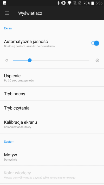 Pisząc o ekranie nie sposób nie wspomnieć o świetnej reakcji na dotyk i bezproblemowym ślizgu palca po nim, doskonałych kątach widzenia, ale również o dwóch trybach: nocnym (znanym również jako filtr światła niebieskiego) oraz czytania (przełącza kolory w monochrom) – oba są warte zainteresowania. Do tego dochodzi jeszcze możliwość zmiany temperatury barwowej w ustawieniach ekranu oraz jego delikatnej kalibracji pod indywidualne preferencje.