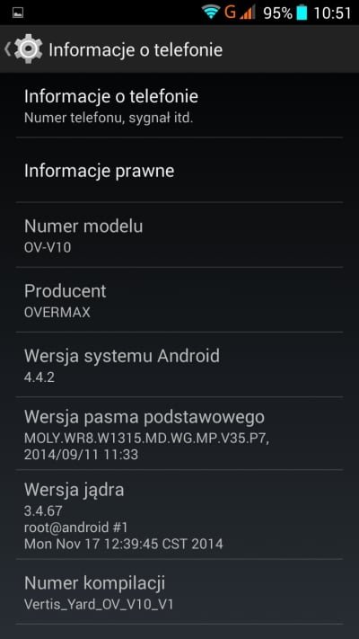 Za działanie Overmax Vertis Yard odpowiada ośmiordzeniowy procesor MediaTek MT6592 1,7GHz z Mali-T450 MP4 i 2GB RAM oraz system operacyjny Android 4.4.2 KitKat (jeśli ktoś kupił telefon z Androidem 4.2, może go zaktualizować do KitKata dzięki paczce aktualizacyjnej ze strony Overmax).