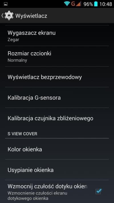 Jak wspomniałam na wstępie, w zestawie z Overmax Vertis Yard znajdziemy etui chroniące ekran (z ustawień dowiadujemy się, że zostało nazwane S View Cover). Po zamontowaniu go możemy korzystać z okienka wyświetlającego najważniejsze informacje, z możliwością przejścia do aparatu (robi wtedy kwadratowe zdjęcia), kalendarza i odtwarzacza muzycznego. Gdy otwieramy etui telefon automatycznie się wybudza, gdy zamykamy – usypia. Warto jednak wspomnieć, że w momencie korzystania z kwadratowego okienka, mimo wszystko podświetlony jest cały ekran (powierzchnia obok kwadratu jest po prostu czarna).
