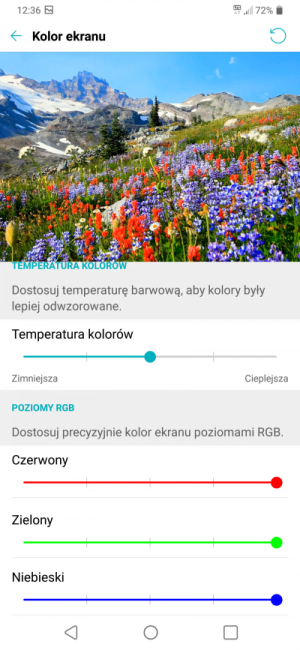 W przypadku G7 ThinQ ważne kwestie związane z ekranem są co najmniej trzy. Pierwsza to oczywiście notch – można go lubić, można nie, najważniejsze – producent nas na niego nie skazuje, co oznacza, że w dowolnym momencie możemy go wyłączyć lub włączyć. Druga rzecz to skalowanie aplikacji; z racji nietypowych proporcji ekranu konieczne jest dopasowywanie wyglądu wyświetlanych programów do całej przestrzeni wyświetlacza – i faktem jest, że nie ma z tym najmniejszych problemów. Trzecia rzecz to tryb czytania, czyli nic innego, jak filtr światła niebieskiego, dzięki któremu korzystanie nocą z telefonu jest bardziej komfortowe. W ustawieniach ekranu można też zmieniać tryb kolorów oraz temperaturę wyświetlanych barw i zdecydowanie warto się zainteresować tymi funkcjami, bowiem domyślnie ekran wyświetla bardzo chłodne barwy, co nie każdemu będzie odpowiadało.