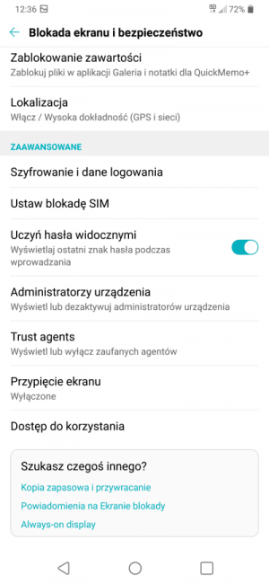 W LG G7 ThinQ mamy dostępne trzy możliwości zablokowania dostępu do telefonu. Są to: