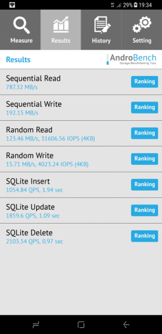 – szybkość losowego odczytu danych: 123,46 MB/s,
