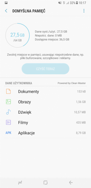 Galaxy S8 i Galaxy S8+ są pierwszymi przedstawicielami serii Galaxy S, które nie są dostępne w wersji z 32GB pamięci – najmniejsza pojemność (i jedyna w Polsce) to 64GB. Jeśli zatem chodzi o pamięć wewnętrzną, z 64GB do wykorzystania przez użytkownika zostaje 54GB. Można ją rozszerzyć dzięki slotowi kart microSD. Ale gdybyście chcieli to zrobić, warto zainwestować w jakąś szybszą kartę, by choć trochę dorównała naprawdę szybkiej pamięci wewnętrznej UFS 2.1.