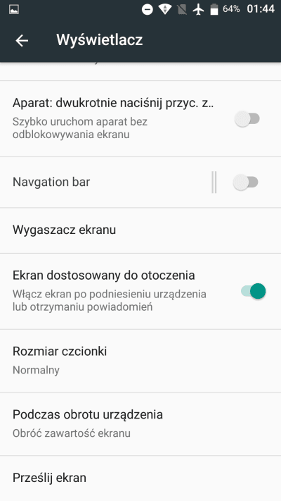 Pisząc na temat wyświetlacza muszę napomknąć jeszcze o dwóch rzeczach. Pierwszą jest navigation bar, czyli dolna belka systemowa, która jest wyświetlana na ekranie, ale wcale nie musi – wszystko za sprawą tego, że te same gesty dostępne są z poziomu przycisku Home i tylko od nas zależy, jak wygodniej nam się z nich korzysta (belkę można ukryć wyłączając odpowiednie ustawienia ekranu). Druga rzecz to funkcja nazwana dość enigmatycznie: „ekran dostosowany do otoczenia”, a tak naprawdę to coś na kształt powiadomień znanych ze smartfonów Lenovo Moto – ekran podświetla się po podniesieniu urządzenia lub otrzymaniu powiadomienia.