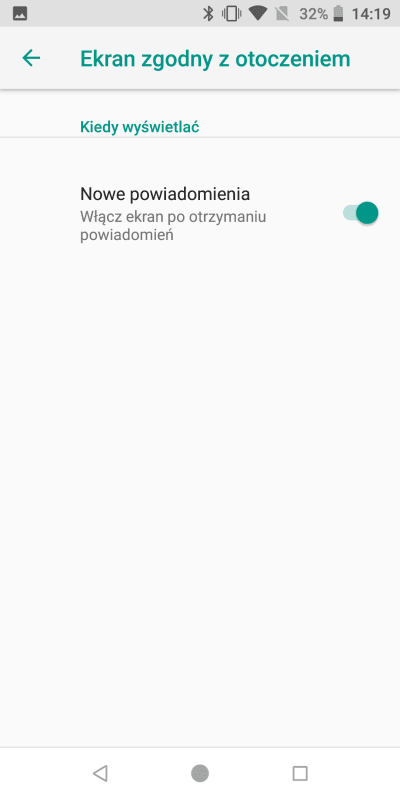 W ustawieniach znajdziemy tryb nocny, eliminujący emitowanie światła niebieskiego – tutaj jako „podświetlenie nocne”, a także funkcję „ekran zgodny z otoczeniem”, która podświetla ekran po otrzymaniu powiadomienia (jeśli nie chcecie z niej korzystać, nic nie stoi na przeszkodzie, by ją wyłączyć).